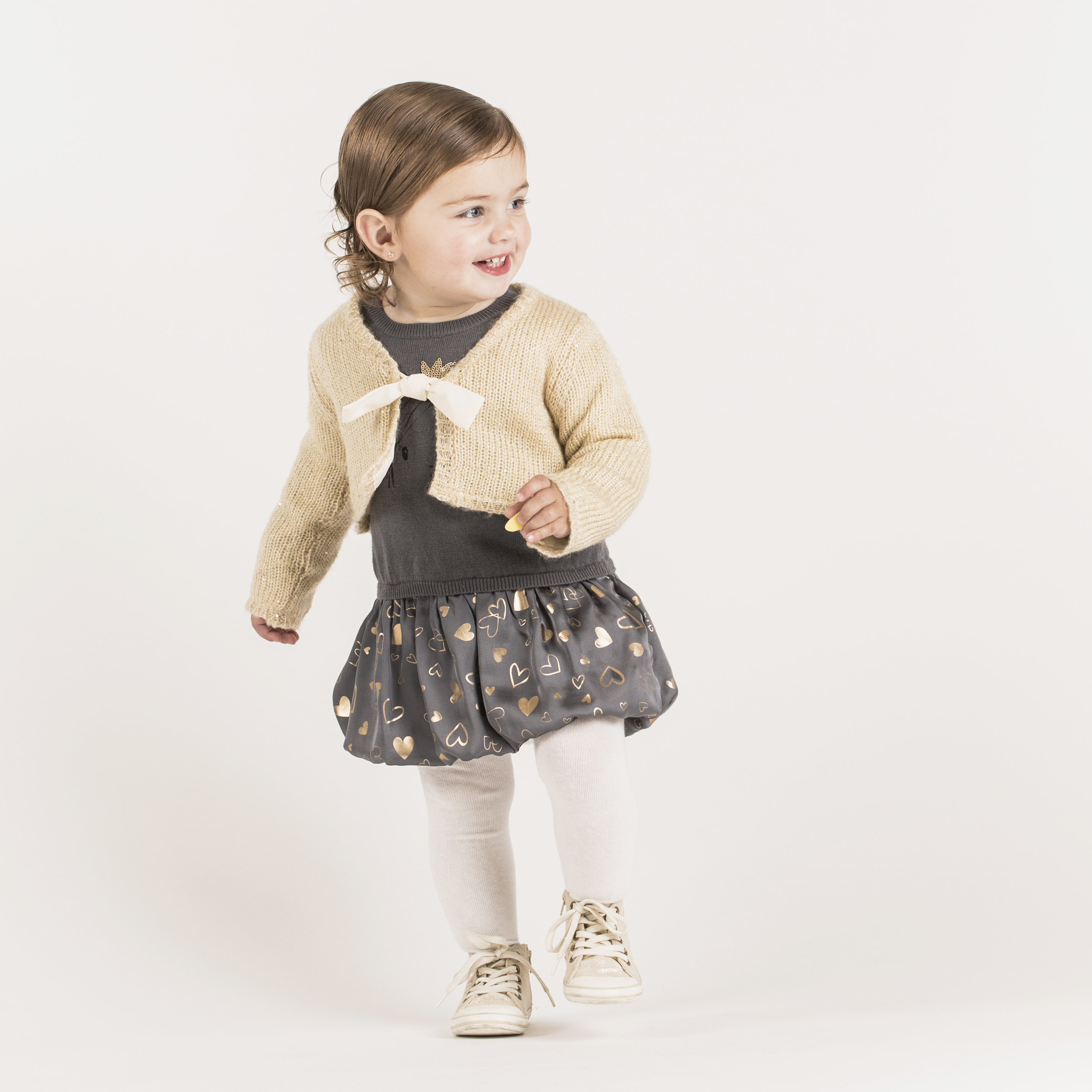 Heart top by boboli, shorts by boboli, lace-up shoes by Anniel and rabbit tights by boboli.