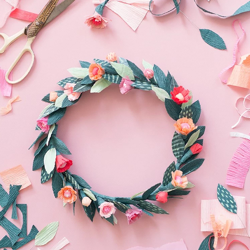 Decorate your garden or windows with a floral wreath made of colored construction paper and a strip of paper. Learn to make it here.