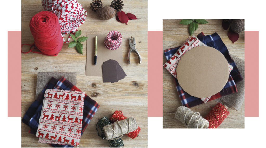 Para hacer estas bolas aprovecharemos esos retales de tela que papá y mamá tienen guardados en el cajón de la costura. Seguro que allí hay guardados algunos bajos de las cortinas o telas que sobrantes de otras cosas y que no se han usado nunca. También necesitarás cintas y/o cuerdas para atar las bolas y darle ese toque navideño.