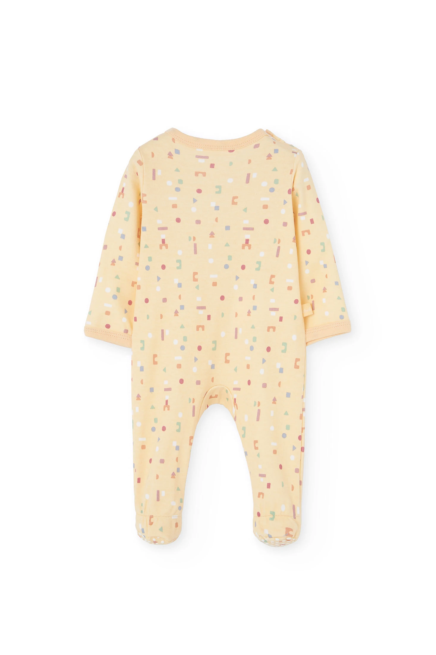 Pijama de punt per a nadó de color groc que presenta un disseny en diversos colors, aportant un toc de tendresa a la vestimenta del teu petit. Ideal per mantenir el teu nadó còmode durant la temporada de tardor i hivern, gràcies al seu teixit suau d'alta qualitat que garanteix escalfor i confort. Perfecte per usar com a peça principal o combinar amb abrics i jaquetes, proporcionant un estil acollidor i elegant. Disponible en talles de 0 mesos a 2 anys, aquest pijama és una addició essencial al guarda-roba del teu nadó.