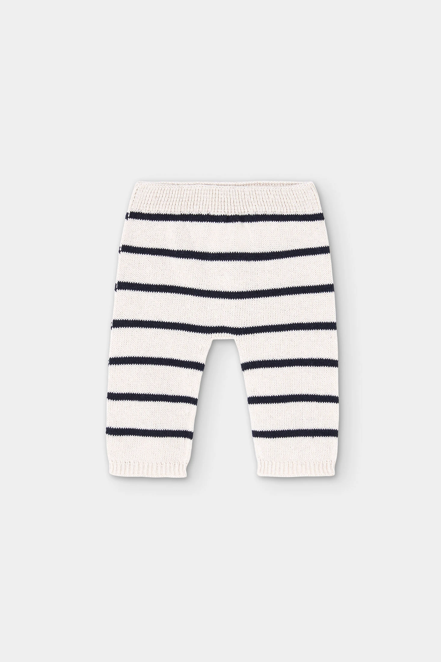 Pantaló de punt per a nadó amb estampat de ratlles, una peça còmoda i pràctica per a les primeres etapes. Pertany a la càpsula REBORN by Boboli, una col·lecció confeccionada amb fil reciclat postconsum. Confeccionat en un teixit suau i elàstic que acompanya els moviments del nadó amb total llibertat. La seva cintura elàstica garanteix un ajust confortable, mentre que el disseny de ratlles aporta un toc clàssic i encantador. Ideal per combinar amb jerseis o bodis de la col·lecció.