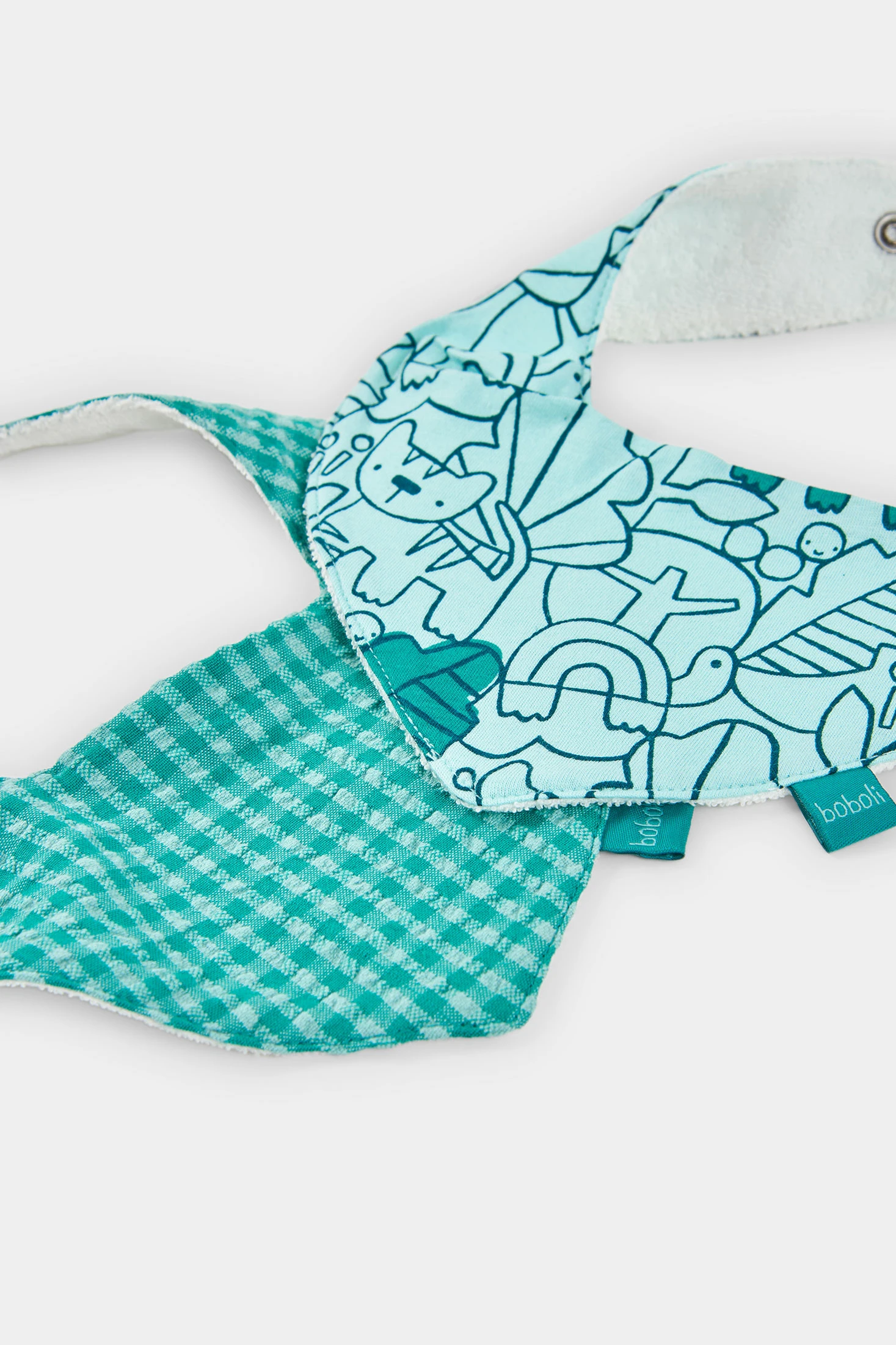 Pack de 2 mocadors de cotó per a nadó nen, ideal per als més petits. Perfectes per a edats des de 0 mesos fins a 24 mesos, combinen funcionalitat i estil. Un mocador presenta un disseny de quadres verds mentre que l'altre està decorat amb dibuixos d'animals i altres elements en un atractiu color verd. El seu teixit suau assegura comoditat en contacte amb la pell del nadó. Aquests mocadors són perfectes per mantenir el petit net i sec, afegint un toc de color al seu vestuari diari.