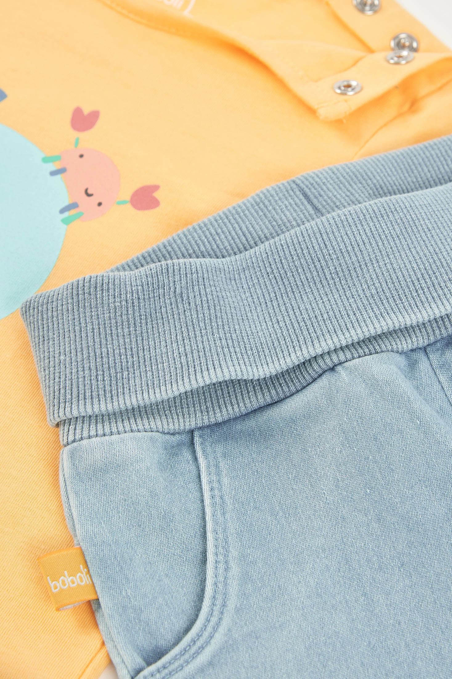 Conjunt de punt per a nen, ideal per als més petits. Confeccionat en cotó groc, ofereix suavitat i comoditat. El disseny presenta una balena simpàtica, la qual cosa afegeix un toc divertit. Inclou talles des d'1 mes fins a 24 mesos, adaptant-se al ràpid creixement del nadó. Samarreta de màniga llarga i pantaló suau proporcionen calor i confort. Perfecte per a l'ús diari, és una opció pràctica i moderna per vestir el teu petit amb estil i alegria durant els dies més frescos de l'estiu.