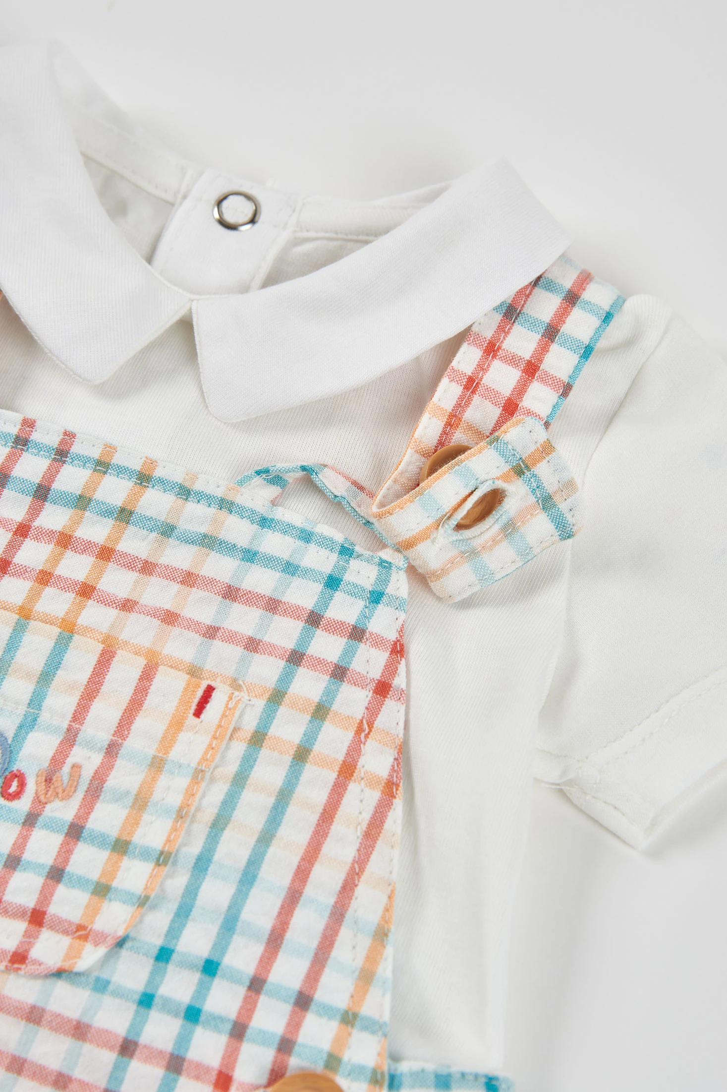 Conjunt de pitet per a nadó confeccionat en cotó suau, ideal per a la delicada pell dels més petits. Presenta un disseny de quadres en tons pastel i té divertits dibuixos d'animals a la part frontal. És perfecte per a nadons des d'1 mes fins a 24 mesos. El seu estil funcional inclou tirants ajustables amb botons i una butxaca davantera decorativa al pitet i samarreta blanca. Combina fàcilment per a un look encantador en qualsevol ocasió.