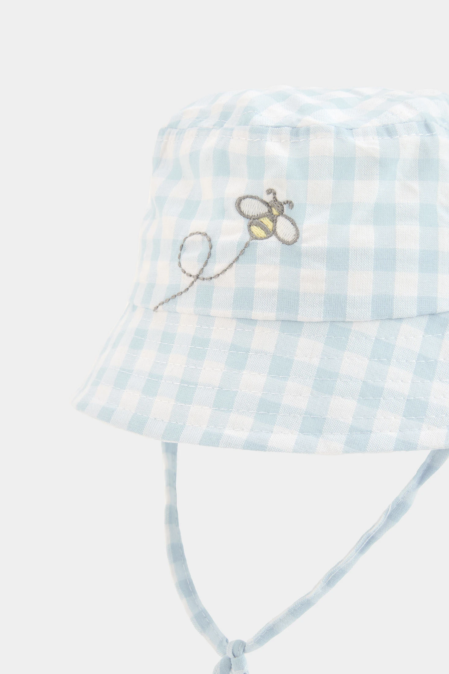 Capell de popelí amb quadres ideal per protegir els més petits del sol. Decorat amb un subtil brodat d'abella, afegeix un detall encantador. El material de popelí és lleuger i transpirable, perfecte per mantenir la comoditat. Adequat per a edats des de 0 mesos fins a 2 anys, disponible en talles XXS a M. De color blau clar amb quadres que aporten un toc clàssic i elegant. Ideal per combinar amb conjunts d'estiu, afegint estil i funcionalitat a la vestimenta del teu petit.
