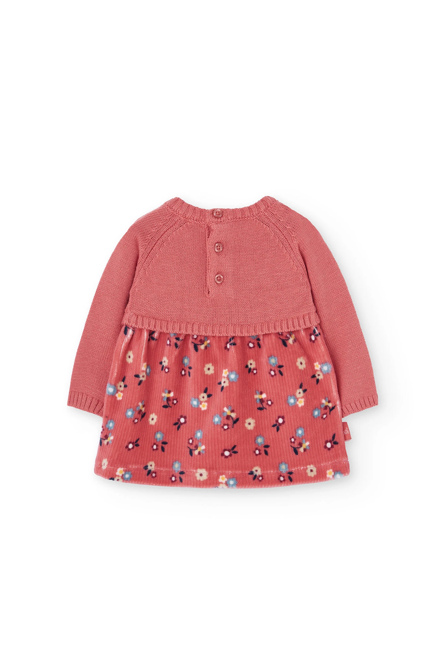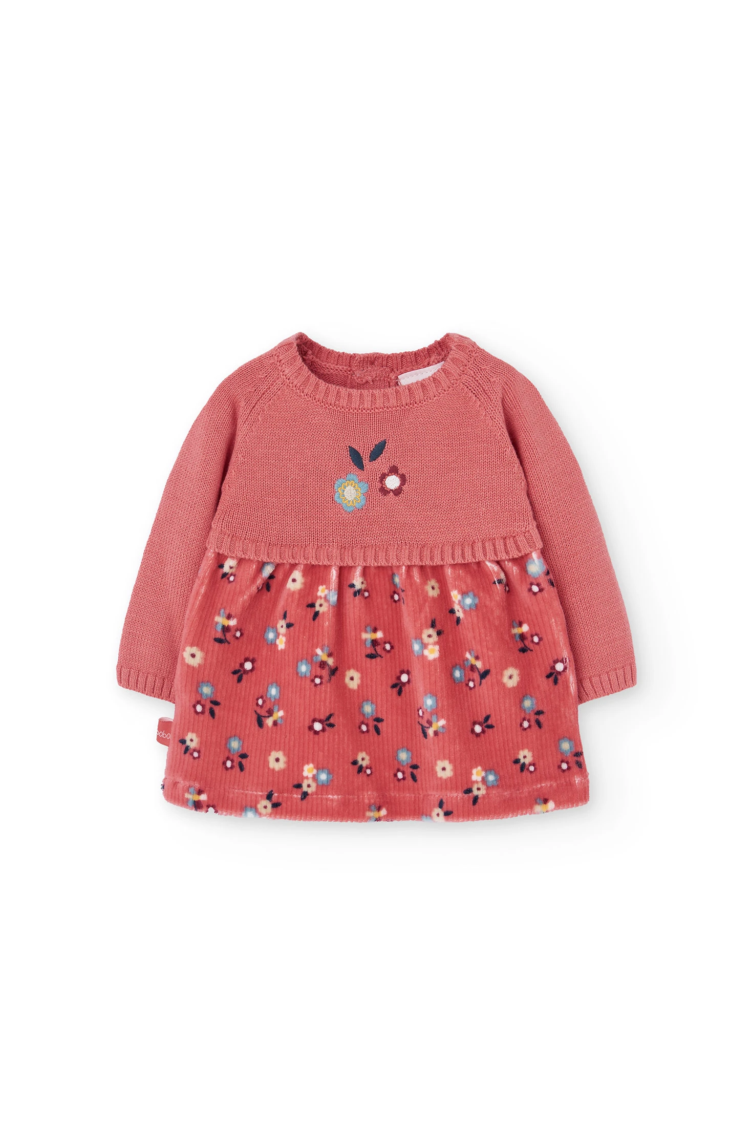 Vestit de rosa floral per a nadó, ideal per a la temporada de tardor i hivern gràcies al seu teixit càlid i suau. Presenta un delicat estampat floral a la part inferior i un atractiu to rosa coral, que ressalten el seu disseny elegant. Amb coll rodó i mànigues llargues, garanteix comoditat i abric per a la teva petita. Disponible en talles d'1 mes a 2 anys, s'adapta al seu creixement, sent perfecte per a ocasions especials o ús diari, fusionant estil i practicitat.