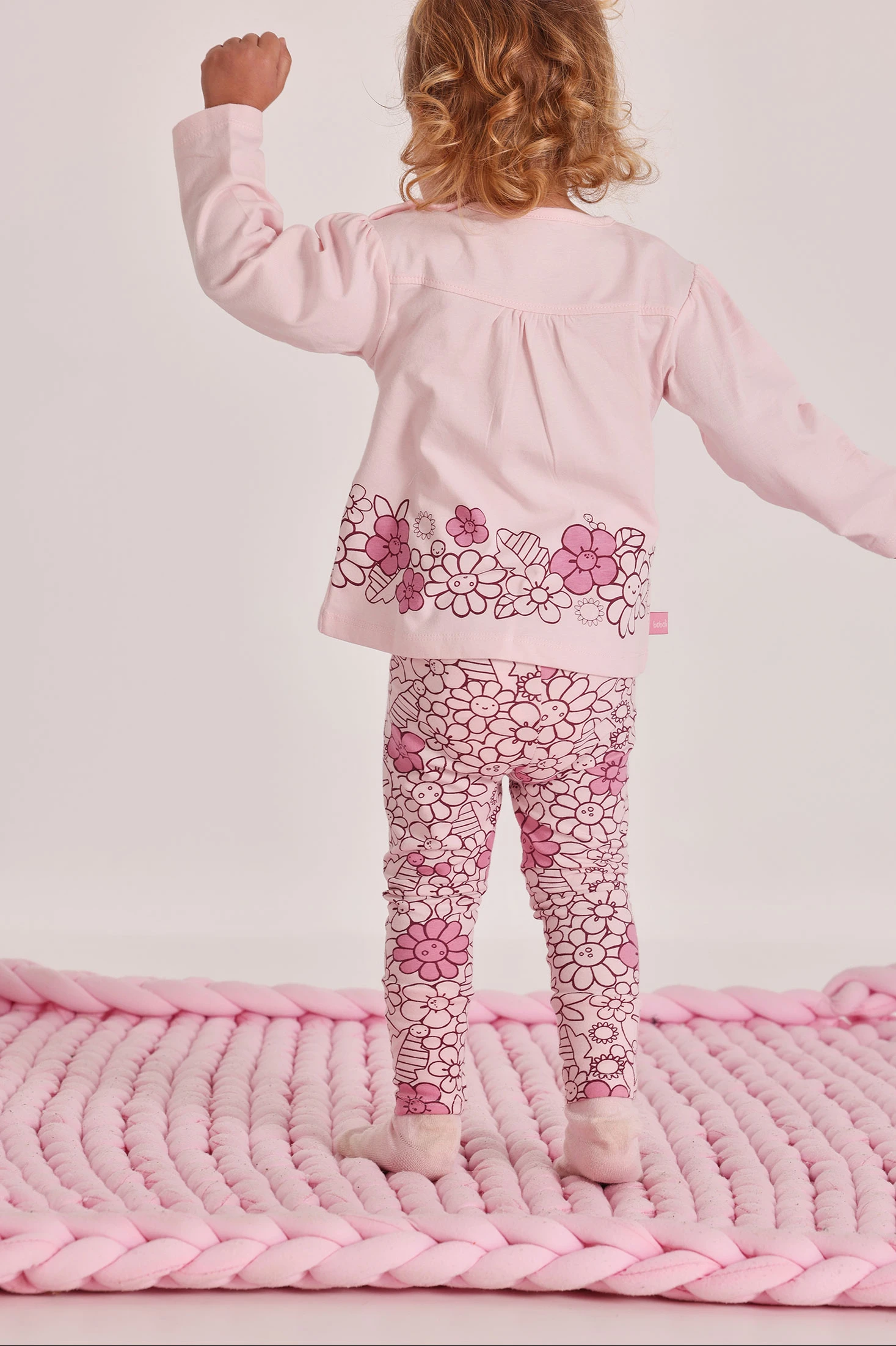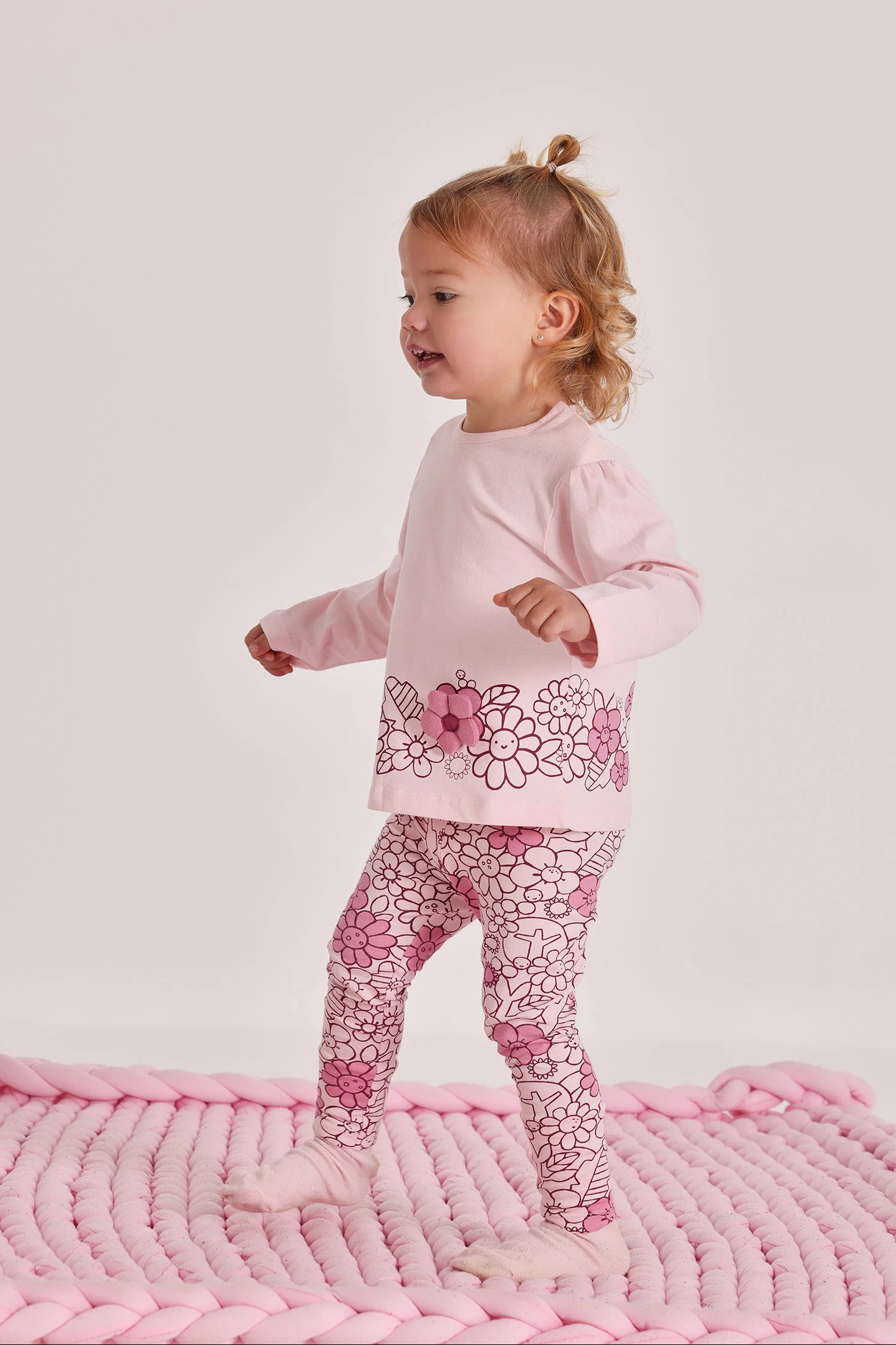 Conjunt de punt de cotó en color rosa per a nena, ideal per a nounats. Presenta un disseny d'estampat floral en tons rosats, proporcionant un toc dolç i estilitzat. El seu teixit és suau i còmode, perfecte per a la delicada pell del nadó. Ideal per a edats des d'1 mes fins a 24 mesos. Les mànigues llargues són perfectes per als dies més frescos, sent una opció versàtil per al dia a dia.