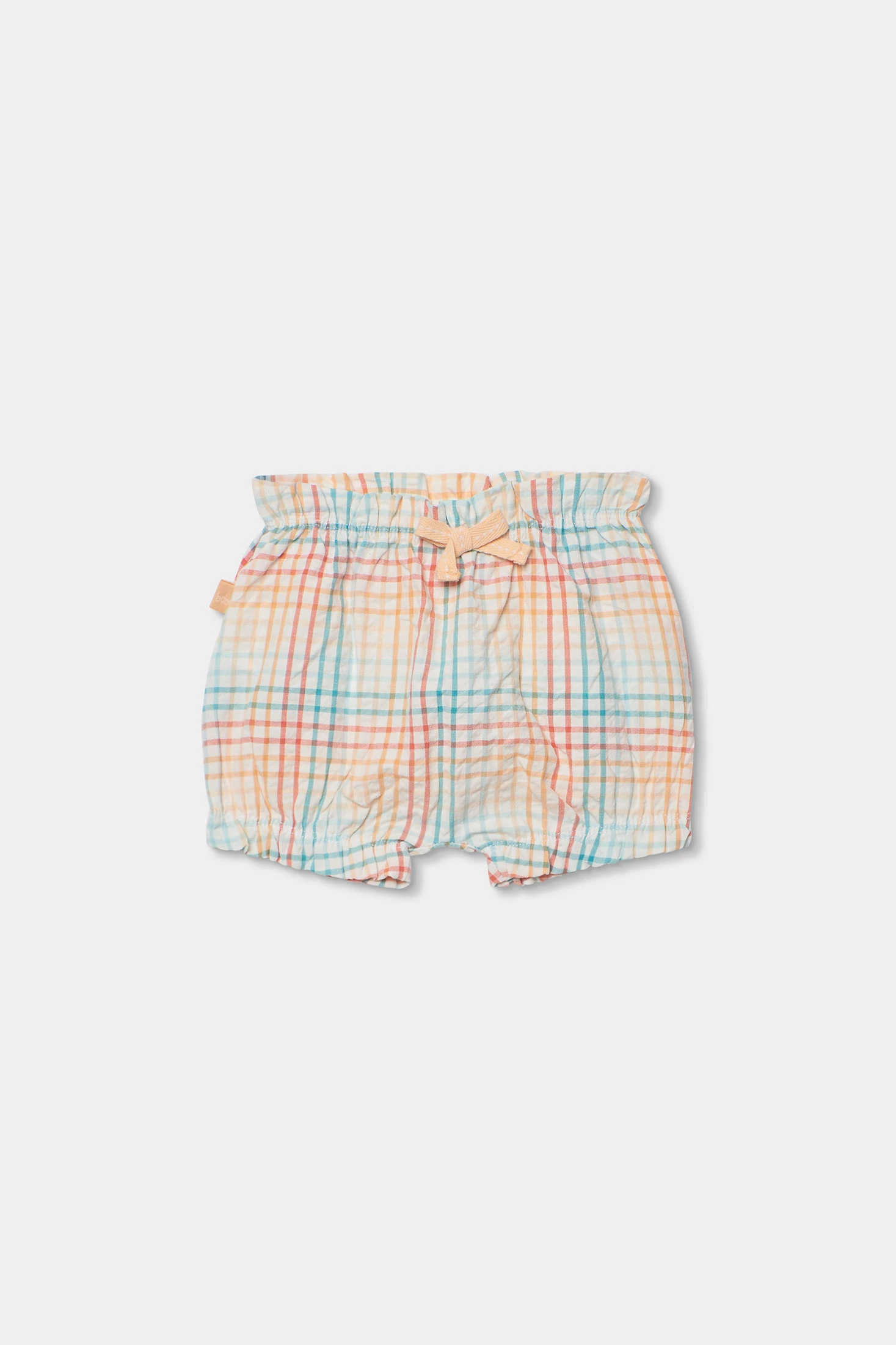Conjunt per a nadó fet de punt combinat amb cotó blanc, ideal per als més petits. El seu disseny presenta un dolç estampat d'animals simpàtics a la part superior i un atractiu coll amb volants, afegint un toc encantador. Els pantalons curts de quadres en tons suaus complementen perfectament el conjunt. Disponible en talles des d'1 mes fins a 24 mesos, garanteix comoditat i estil durant el creixement del nadó. Perfecte per mantenir el teu petit fresc i a la moda en qualsevol ocasió casual.