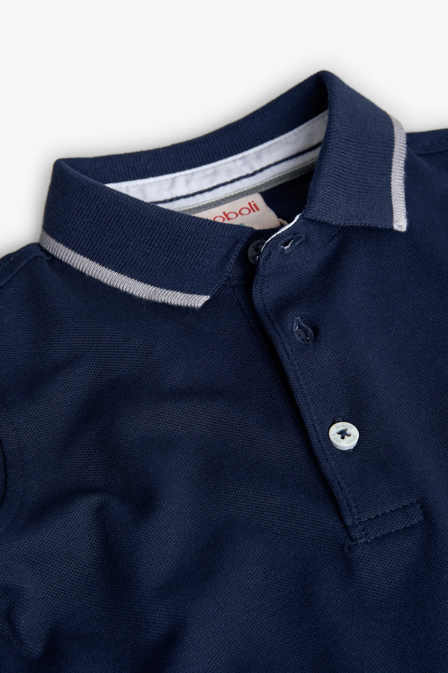 Polo blau marí per a nen, ideal per a les temporades de primavera i estiu. Confeccionat en un teixit de piqué fresc i transpirable, ofereix comoditat durant els dies càlids. L'elegant color blau marí és versàtil, i el petit disseny brodat al pit afegeix un detall distingit. Presenta un clàssic coll polo i botons per a un ajust senzill. Disponible en talles des dels 12 mesos fins als 10 anys, es combina fàcilment amb pantalons curts o llargs, aportant un toc sofisticat i casual a qualsevol conjunt.