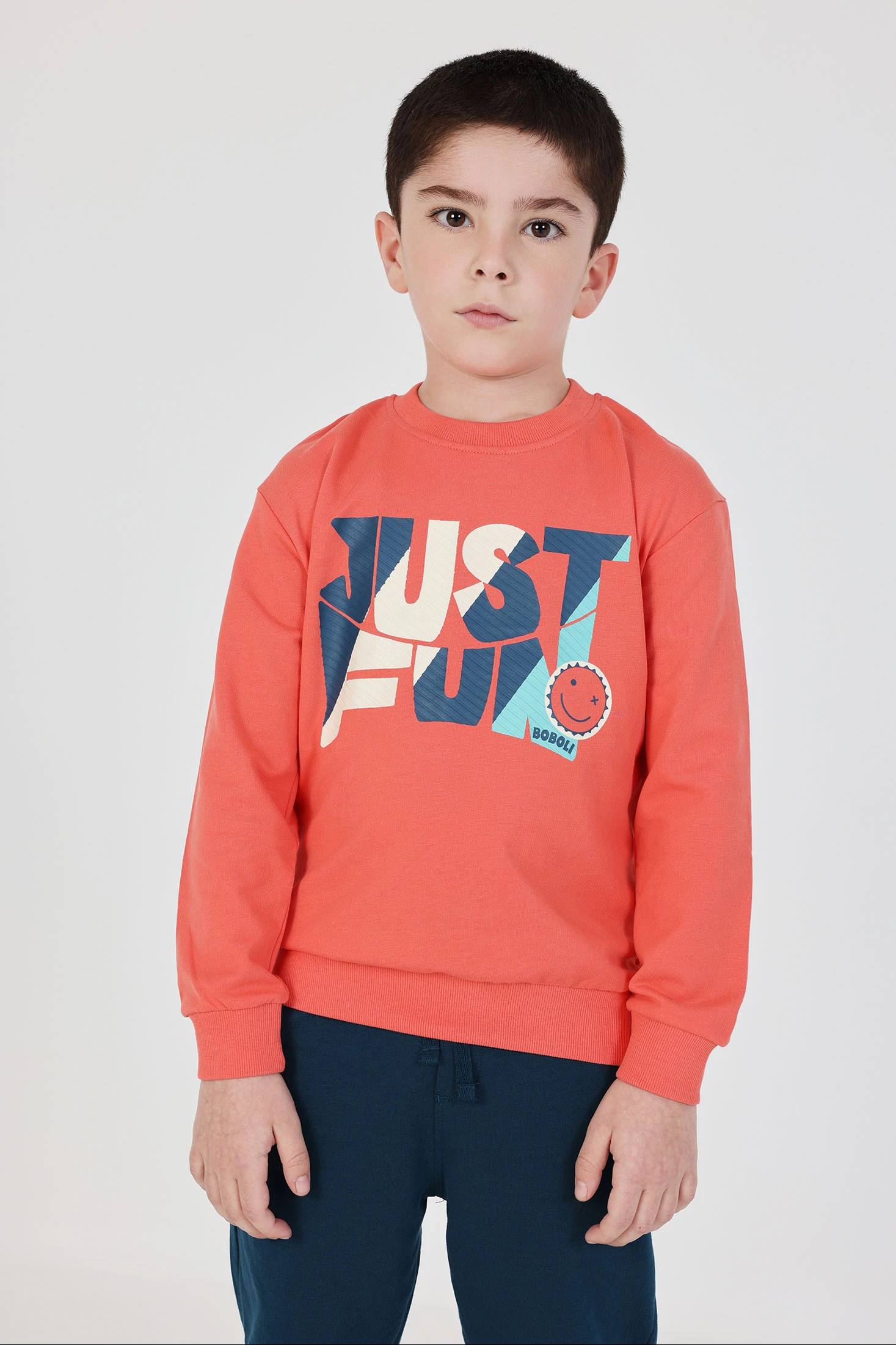 Conjunt de cotó per a nen ideal per a un look còmode i divertit. La dessuadora de color taronja presenta un estampat de text cridaner, mentre que els pantalons llargs són d'un blau fosc contrastant. Conjunt perfecte per al dia a dia que combina estil amb funcionalitat. Disponible en talles des dels 12 mesos fins als 10 anys, adaptant-se al creixement dels petits. És una opció pràctica i acollidora per als dies més frescos de primavera i estiu.
