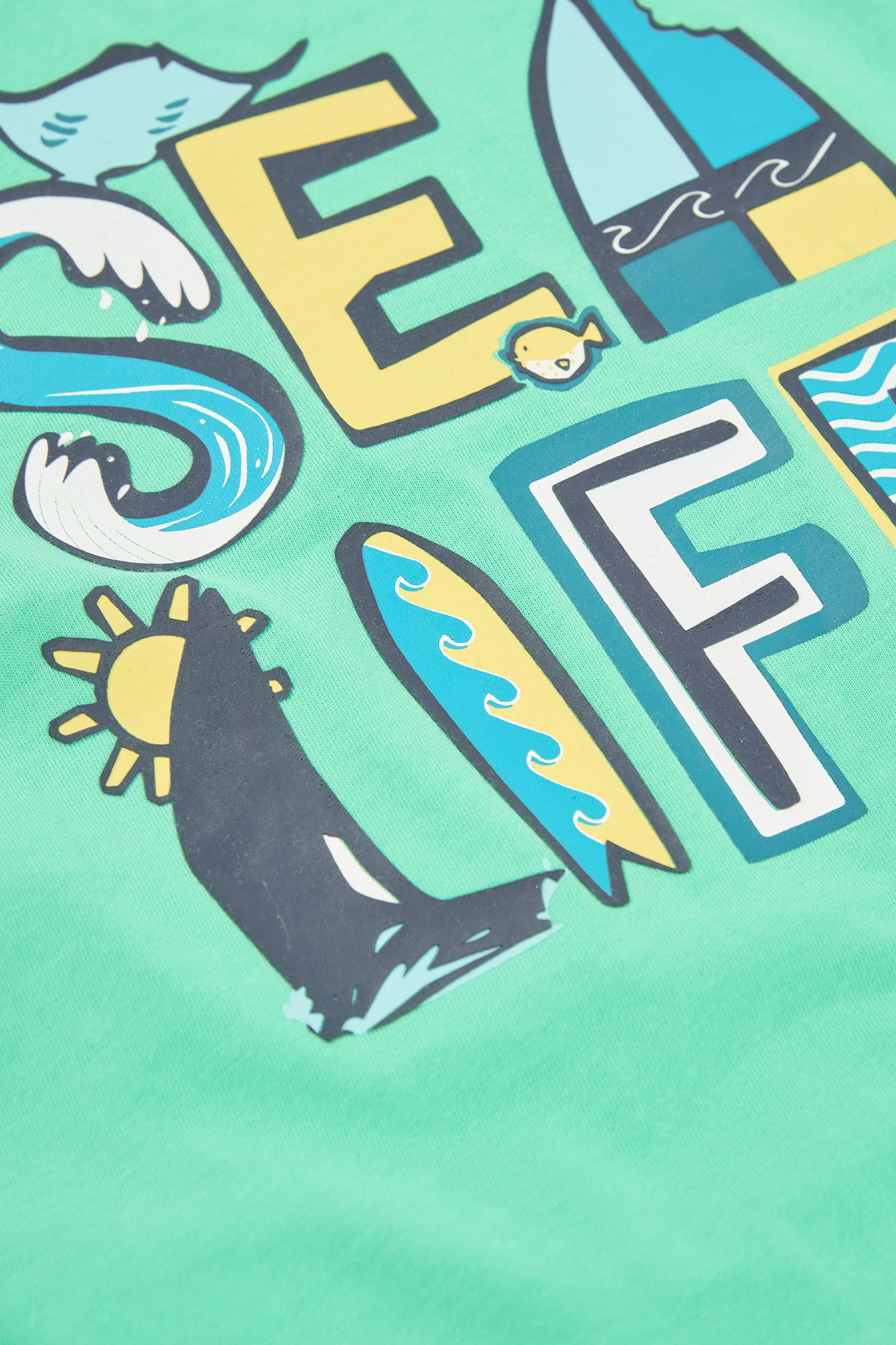 Samarreta sense mànigues de punt verd ideal per a nens en temporades càlides. El seu disseny divertit inclou lettering amb motius marins i petits detalls d'animals, donant un toc fresc i estiuenc. Fabricada en cotó, ofereix comoditat en l'ús diari. Disponible en talles per edats de 12 mesos fins a 10 anys. Perfecta per combinar amb pantalons curts o texans, aquesta samarreta afegeix estil i color a qualsevol conjunt, sent versàtil i còmoda per a qualsevol ocasió casual.