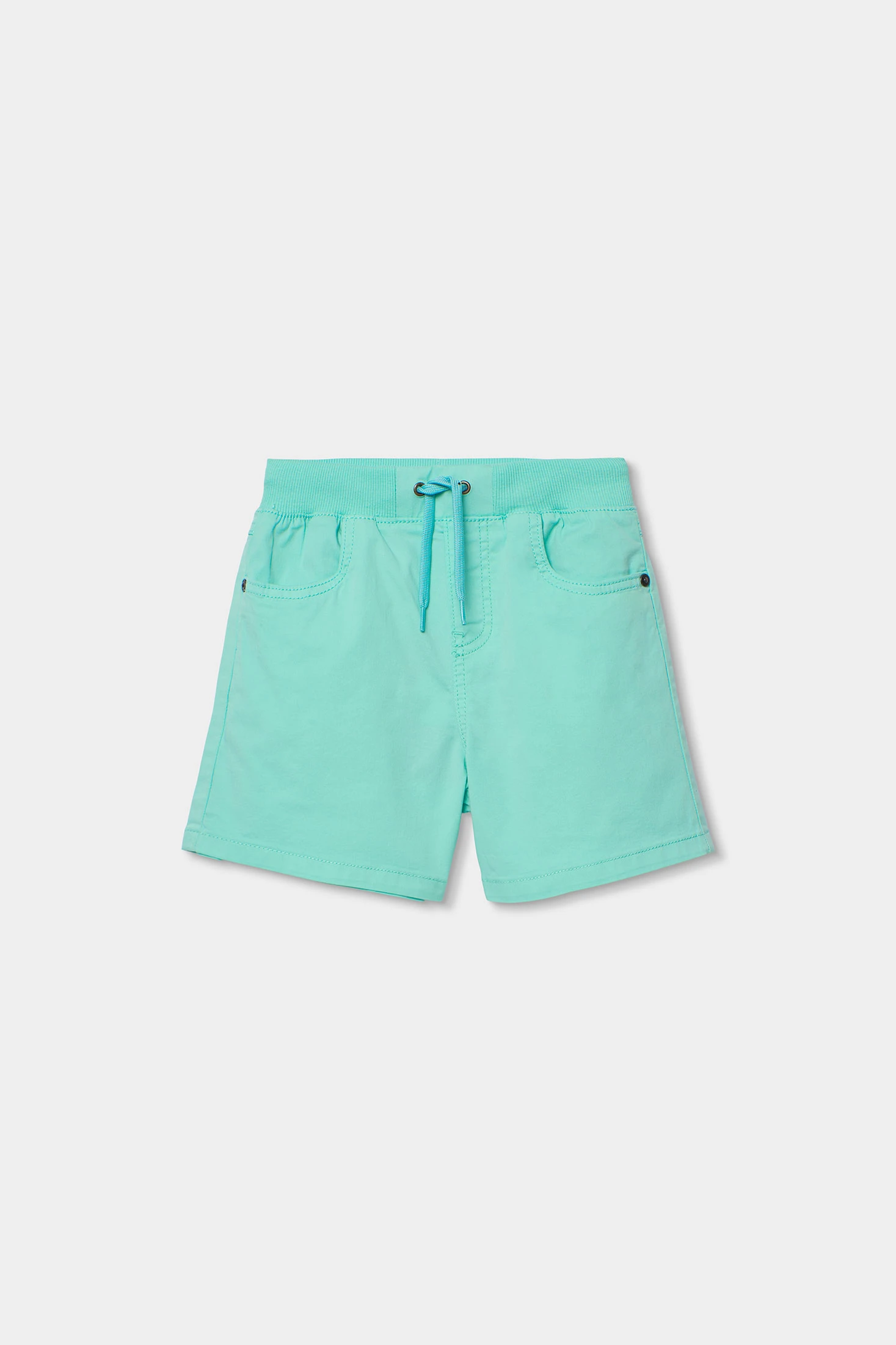 Bermudes de gavardina elàstica en color verd aigua ofereixen comoditat i frescor per als més petits. El seu disseny senzill amb cintura elàstica ajustable garanteix un ajustament perfecte i fàcil d'usar. El material de cotó les fa ideals per a les activitats diàries en climes càlids. Disponibles en talles des de 12 mesos fins a 14 anys, el seu color vibrant afegeix un toc de diversió al guardarropa infantil. Perfectes per combinar amb samarretes i camises lleugeres, aquestes bermudes són una opció pràctica i versàtil per al dia a dia dels nens.