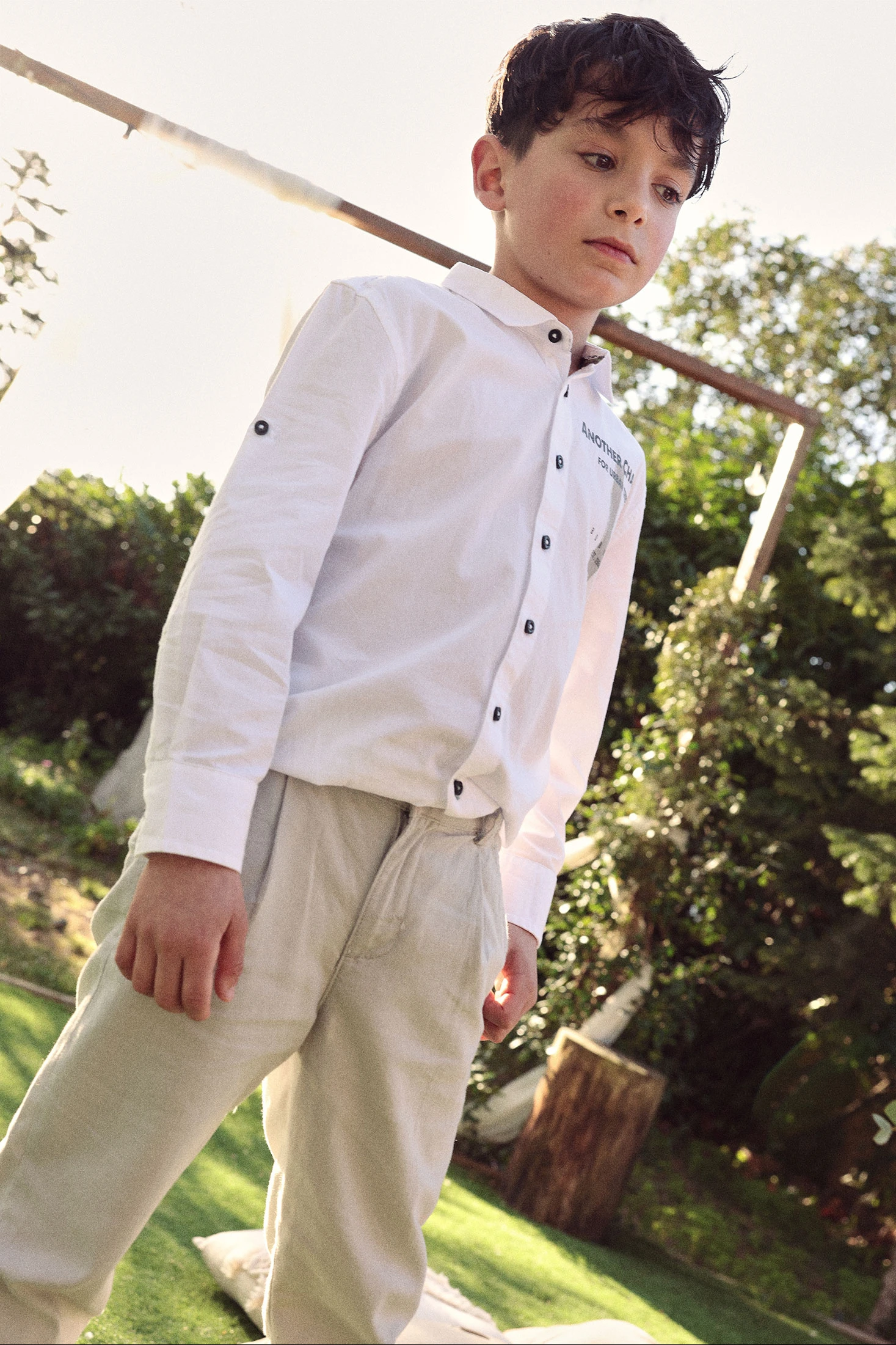 Camisa de popelí per a nen confeccionada en un teixit suau blanc, ideal per a ocasions formals o casuals. Destaca un estampat gràfic discret i botons en contrast, afegint un toc modern al disseny clàssic. Amb un coll tradicional i mànigues llargues, és perfecta per a entretemps. Disponible en talles de 2 a 14 anys, s'adapta a diferents etapes de creixement. Peça versàtil que combina fàcilment amb pantalons de vestir o texans, oferint un estil elegant i còmode.