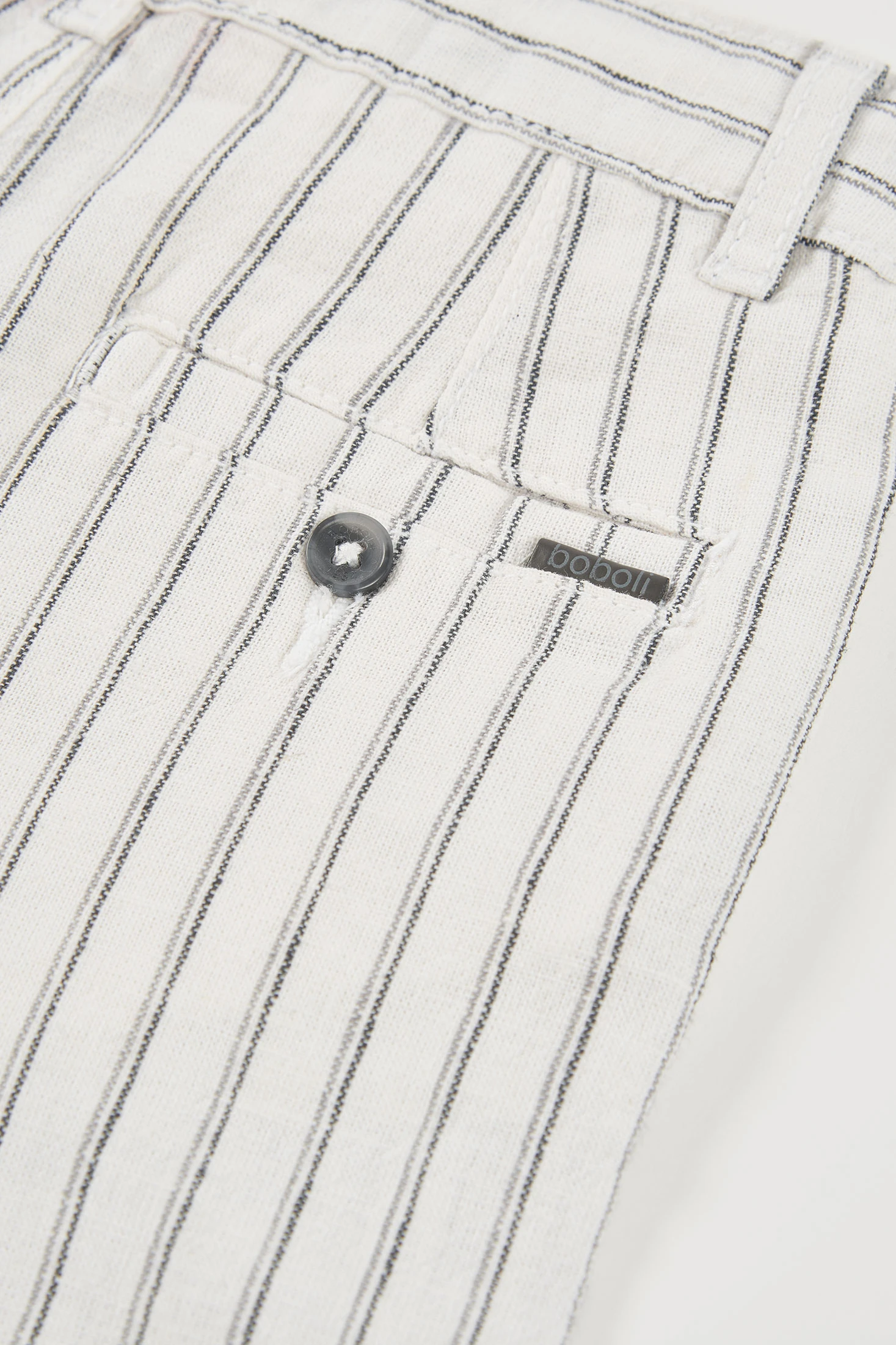 Bermudes de lli ratllades en blanc i negre són perfectes per a climes càlids, gràcies al seu material lleuger i transpirable. El disseny de ratlles verticals en blanc i negre aporta un toc clàssic i sofisticat. Disponibles en talles des de 2 fins a 14 anys, són ideals per a nens en creixement. La seva estructura funcional inclou passadors per a cinturó i tancament de botó, assegurant un ajust còmode. Perfectes per combinar amb samarretes o camises lleugeres, aporten un estil fresc i elegant per a qualsevol ocasió casual d'estiu.