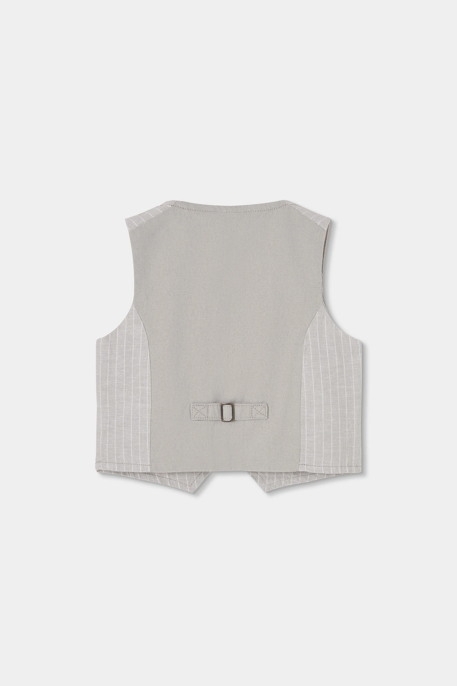 Armilla de lli per a nen perfecte per a un look elegant i fresc. Presenta un disseny ratllat en un suau color beix, ideal per combinar amb diferents estils. Està confeccionat amb un material lleuger i transpirable, proporcionant comoditat en qualsevol ocasió. Disponible en talles des dels 12 mesos fins als 12 anys, s'adapta al creixement dels més petits. Armilla amb tancament de botons i dues butxaques decoratives al davant, afegint un toc chic. Perfecte per a esdeveniments formals o per afegir un toc sofisticat al dia a dia.