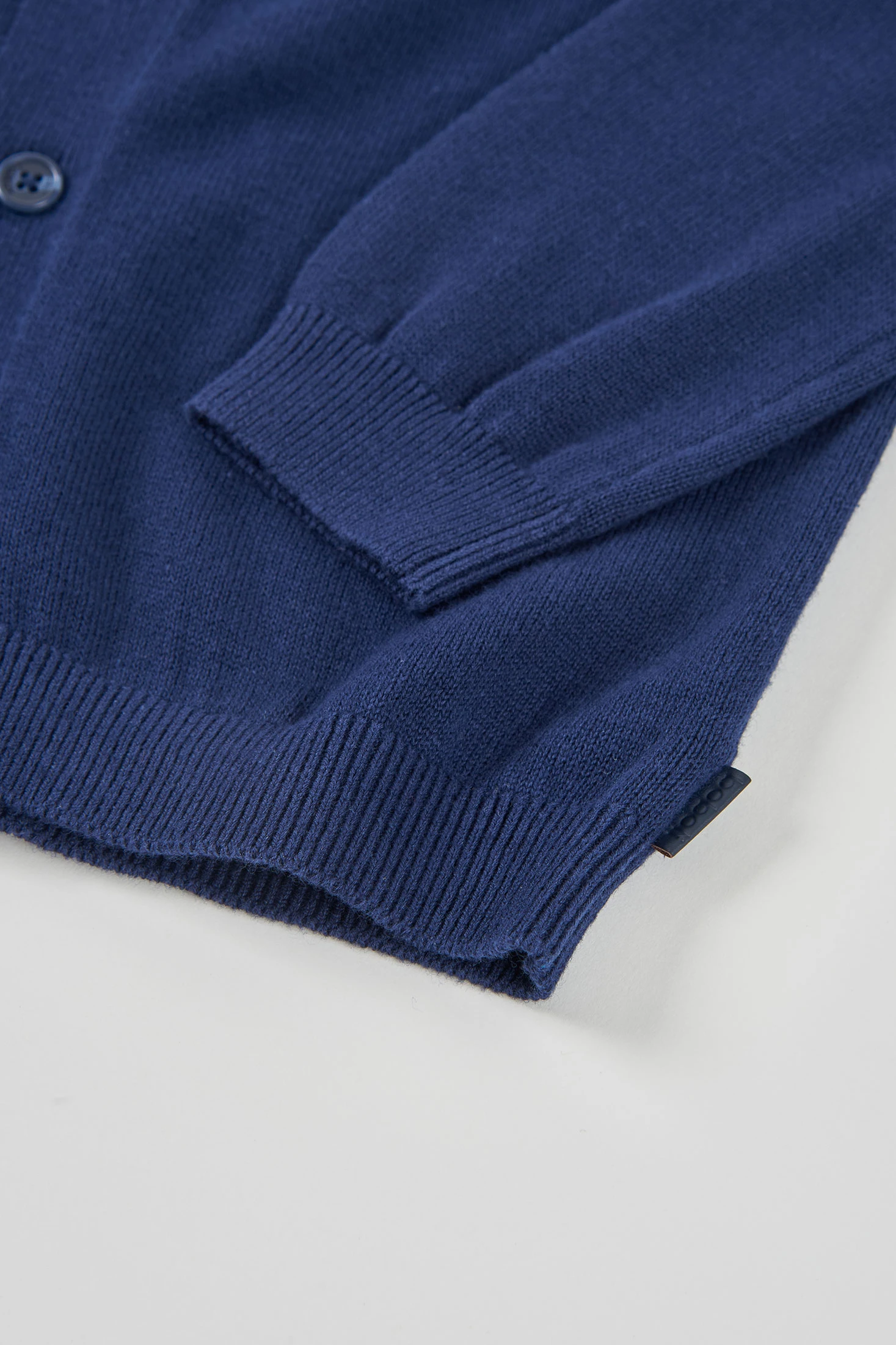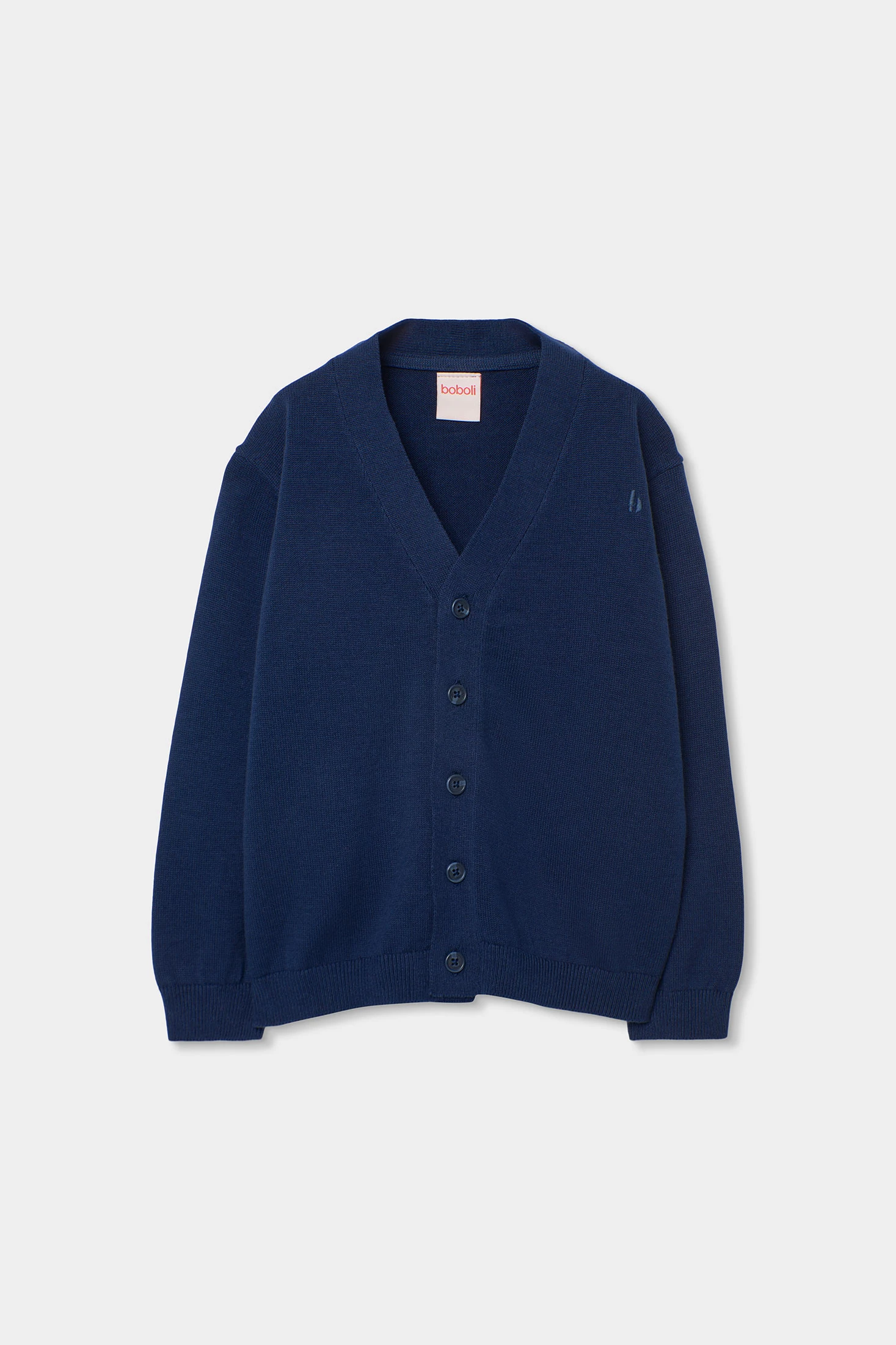 Jaqueta de punt blau per a nen ideal per als mesos de primavera. Amb un disseny clàssic i versàtil, presenta un tancament de botons i un coll en V que afegeix un toc elegant. Està elaborada en un teixit suau i càlid, perfecte per a l'ús diari. El seu color blau marí la fa fàcilment combinable amb altres estils. Disponible en talles des de 12 mesos fins a 14 anys, ofereix comoditat i estil al llarg dels anys de creixement del teu petit.