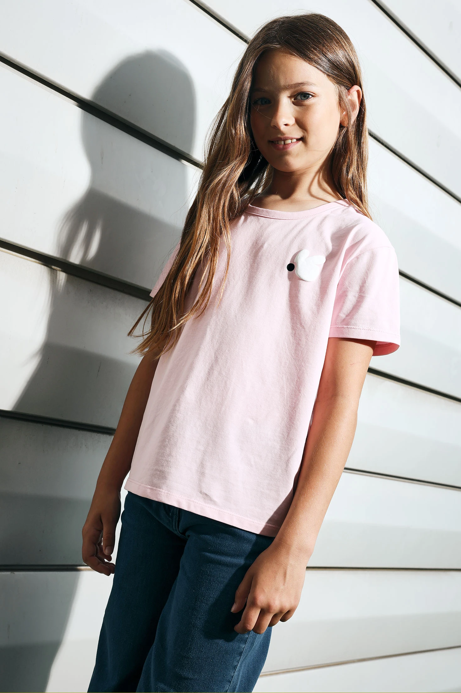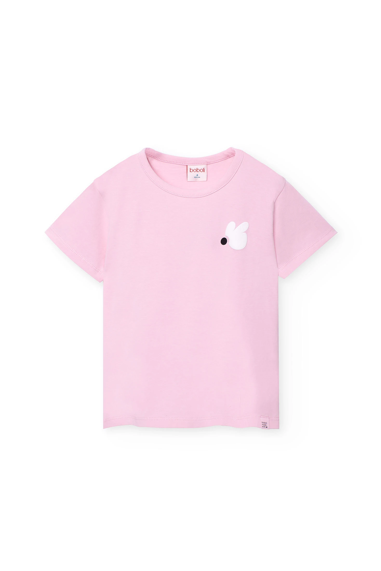 Samarreta de punt per a nena en un delicat to rosa, amb un disseny adorable que aporta un toc de diversió. El coll rodó i les mànigues curtes fan que aquesta samarreta sigui perfecta per als mesos de primavera i estiu. Disponible en talles des de 2 fins a 14 anys, proporciona un ajust còmode i versàtil. Es pot combinar fàcilment amb pantalons o faldilles per crear looks encantadors i divertits per a l'ús diari.