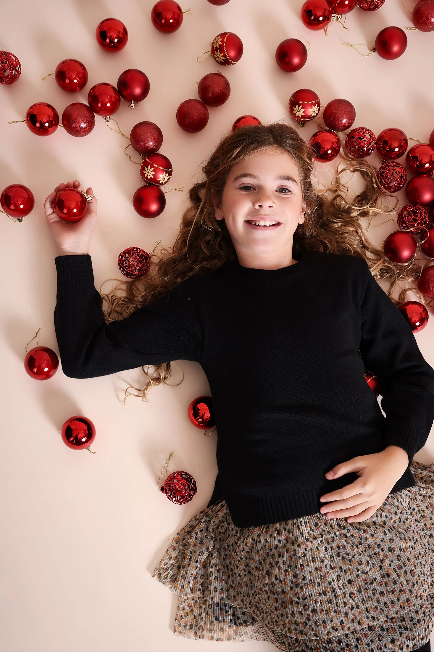 Vestit negre estampat lleopard , ideal per a nenes durant les temporades de tardor i hivern, assegura calidesa i estil. Confeccionat amb un teixit suau, presenta un elegant disseny floral en tons marrons i beix a la part inferior, aportant un toc distintiu. Coll rodó i mànigues llargues el fan perfecte per als dies freds, disponible en talles de 2 a 14 anys. Combina'l amb leotards senzills per aconseguir un look versàtil i còmode en qualsevol ocasió.