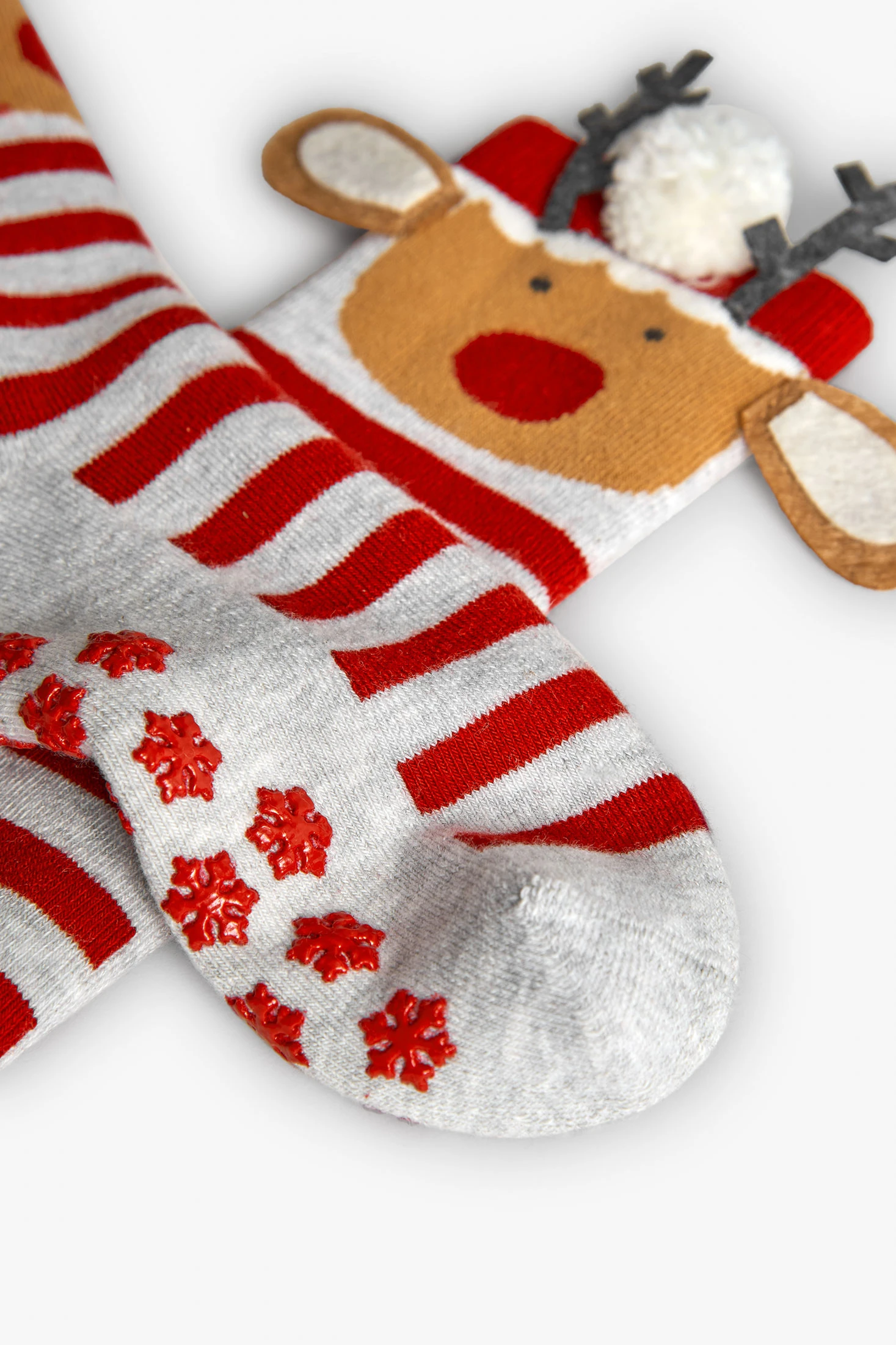 Mitjó llarg de punt cru amb disseny de rens, ideal per a la temporada d'hivern. Perfecte per a nens i nenes, presenta un estampat nadalenc de rens que afegeix un toc festiu i divertit. Confeccionat en un material suau i càlid, garanteix una major comoditat. Disponible en talles des del 22 fins al 45, s'adapta a diferents edats. Opció excel·lent per combinar amb pijames o roba d'estar a casa, mantenint els peus abrigats en els dies freds.
