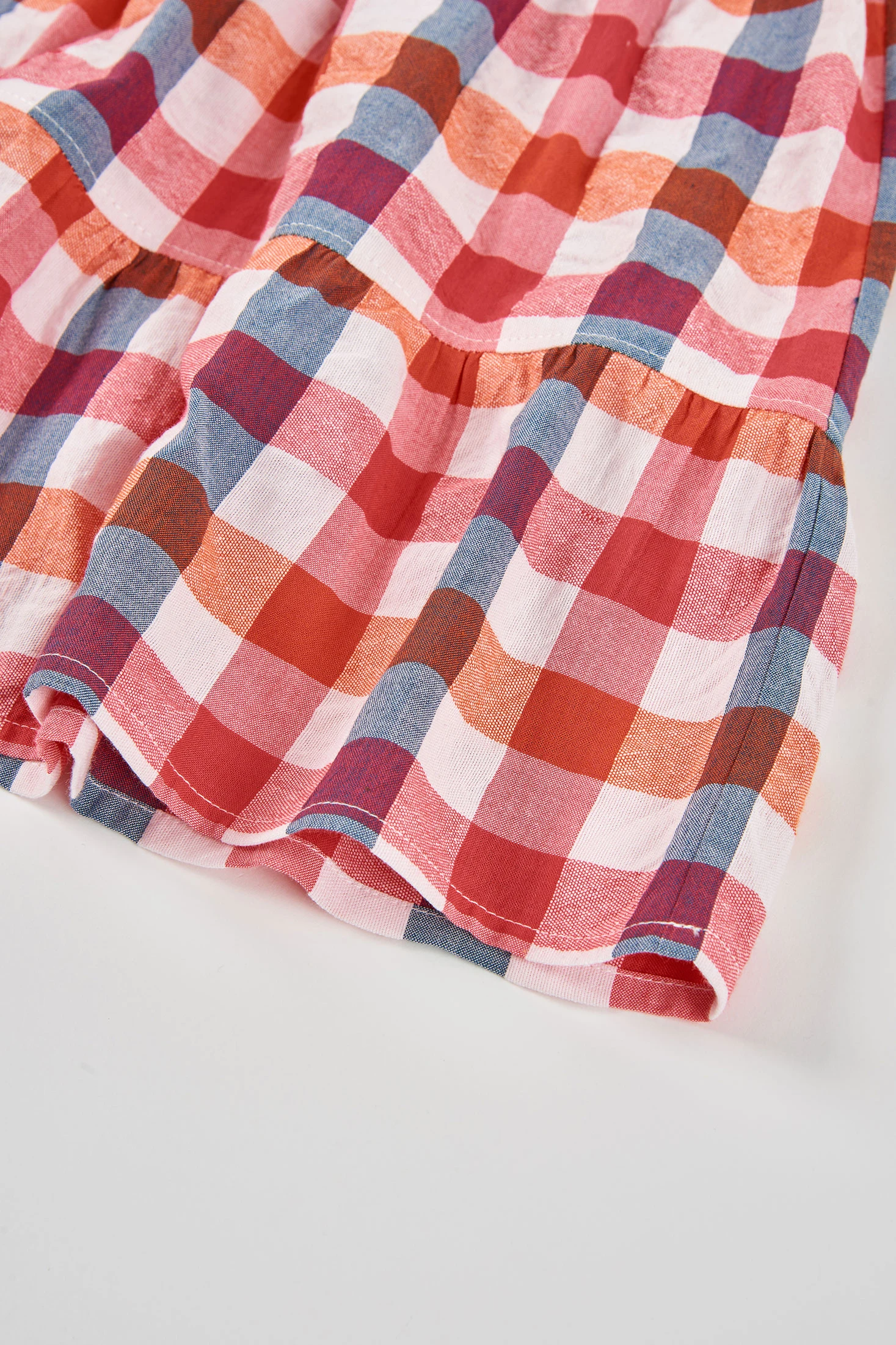 Vestit de popelín per a nena que presenta un encantador disseny a quadres en tons roses, blaus i taronges, ideal per a la temporada de primavera-estiu. El seu teixit lleuger i fresc garanteix comoditat durant tot el dia. Tirenys ajustables amb delicats volants afegeixen un toc adorable al conjunt. Disponible en talles des de 12 mesos fins a 14 anys. Peça versàtil que es pot combinar fàcilment amb altres peces per a crear un look casual o més elegant.