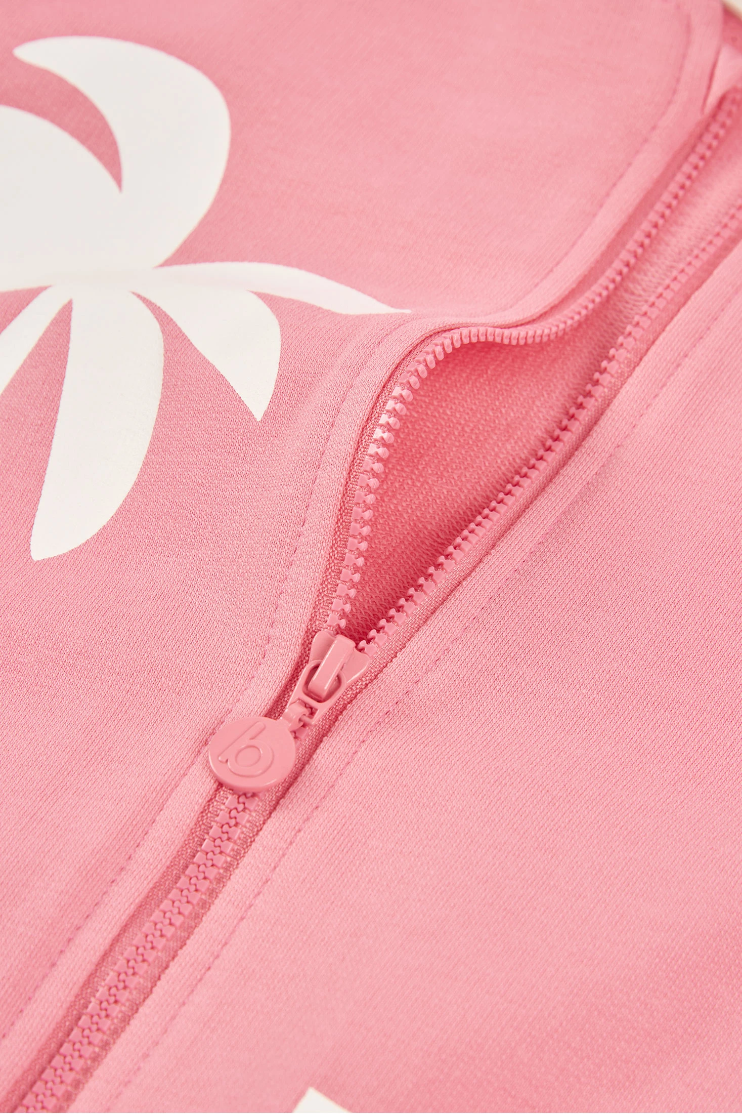 Jaqueta de pelfa per a nena ideal per a les temporades de mitja estació. El seu teixit suau i càlid en color rosa la fa atractiva i còmoda. Presenta un disseny amb estampats de palmeres i la frase "good vibes", aportant un toc alegre i modern. Inclou una caputxa pràctica i tancament de cremallera per facilitar-ne l'ús. Està disponible en talles des de 12 mesos fins a 14 anys, i és perfecta per combinar amb texans o malles per a un look casual i divertit.