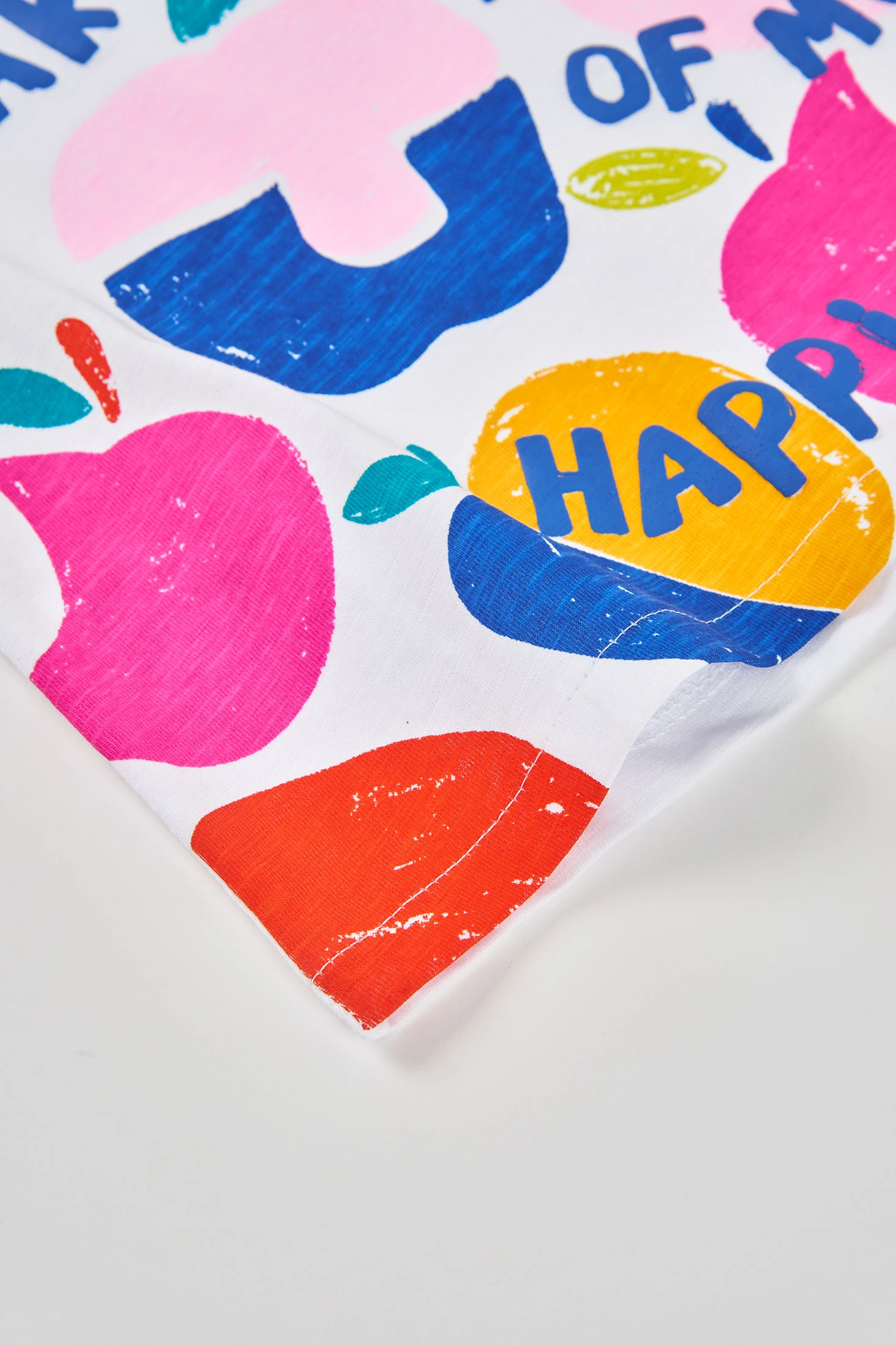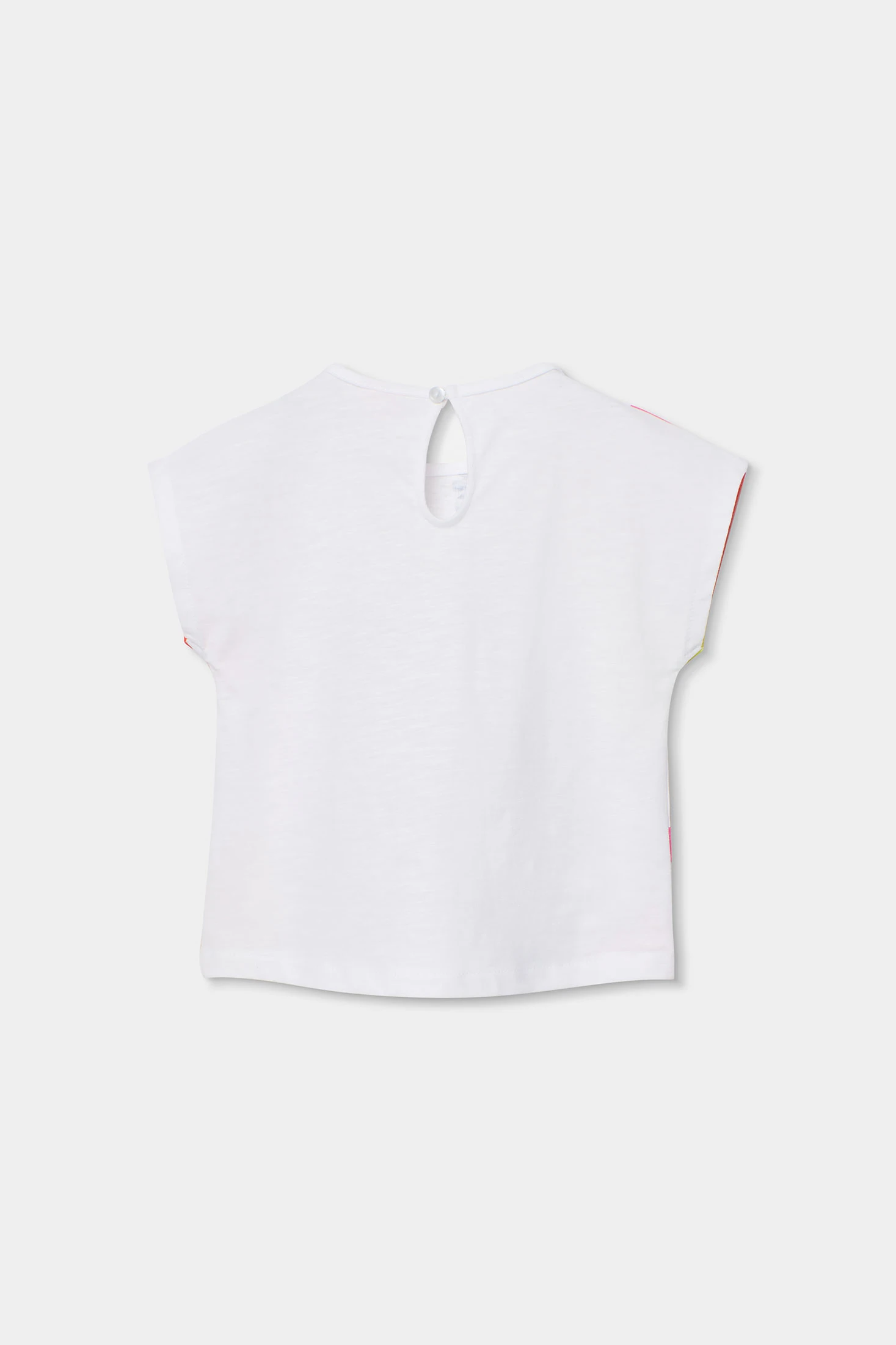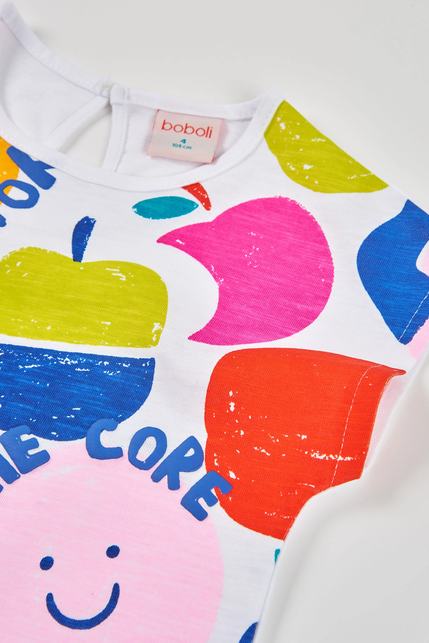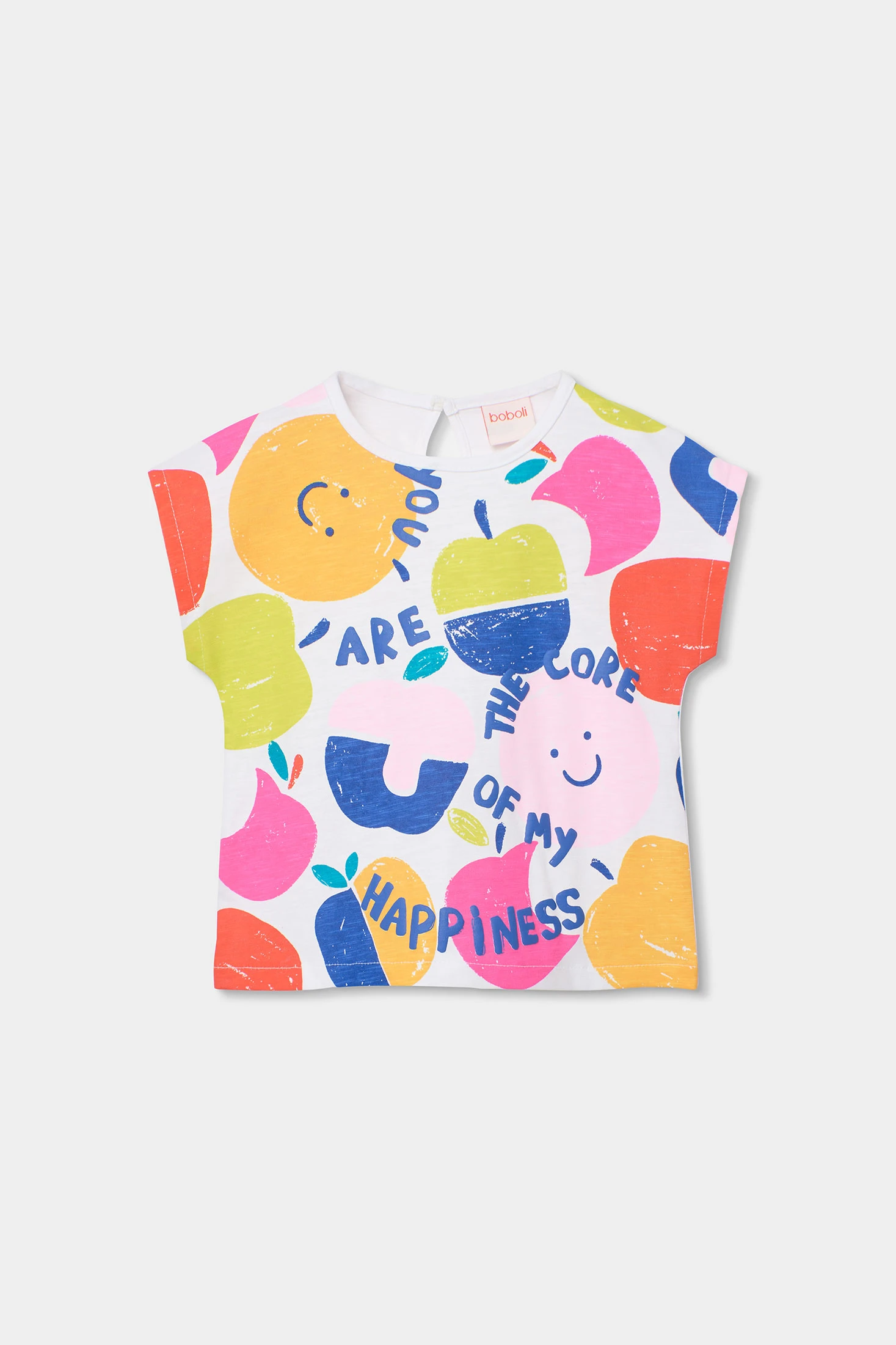 Samarreta per a nena confeccionada en cotó blanc, destacant pel seu disseny alegre amb un estampat acolorit de fruites i missatges que aporten un toc divertit. El seu teixit suau garanteix comoditat, ideal per a pells sensibles. Disponible en talles de 12 mesos fins a 14 anys, perfecta per a qualsevol ocasió casual. El disseny de màniga curta i coll rodó la fa ideal per a l'ús diari, permetent combinacions versàtils amb pantalons curts o faldilles per a un look fresc i juvenil. És una elecció encantadora per afegir color al vestuari de qualsevol nena