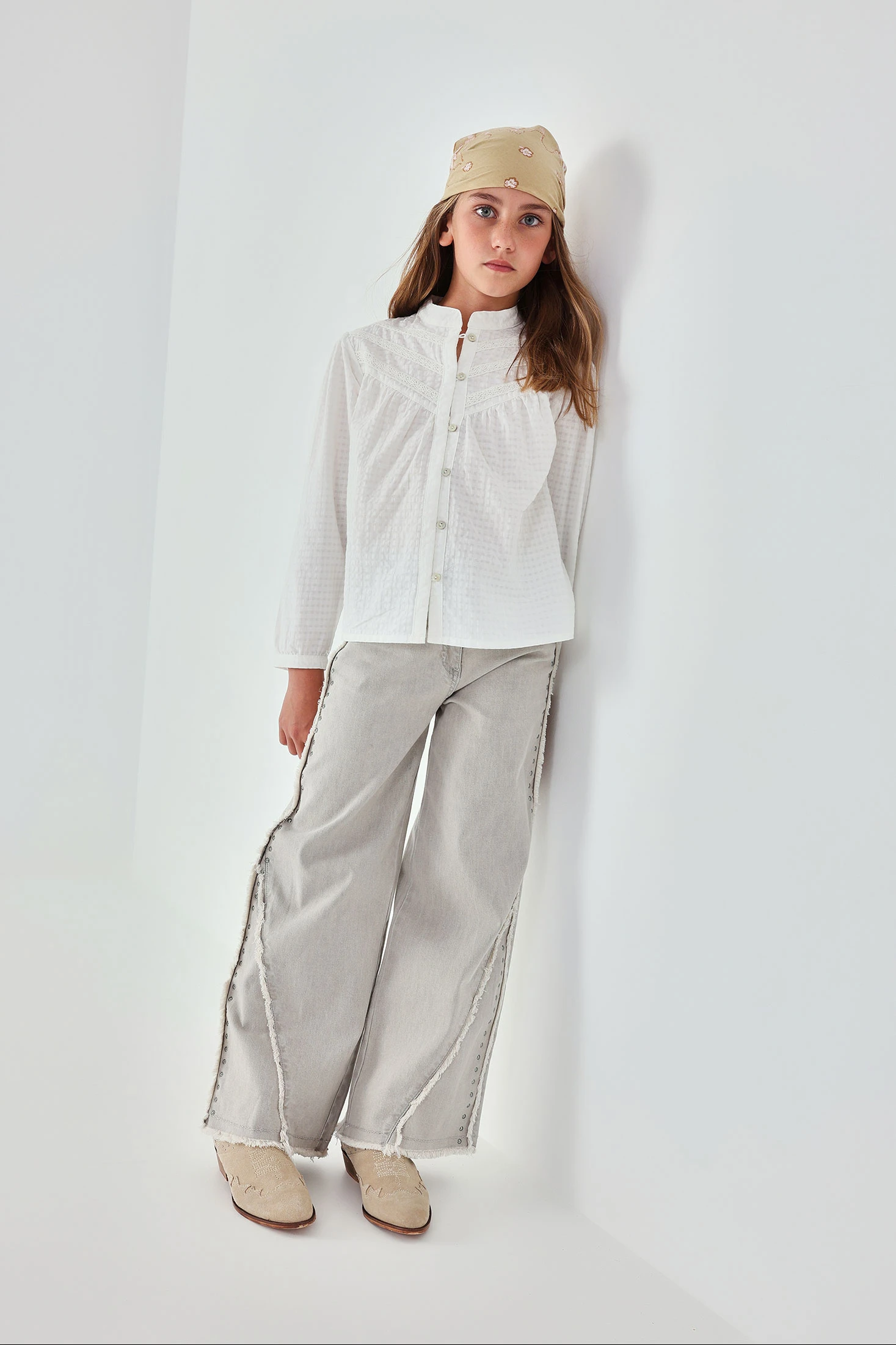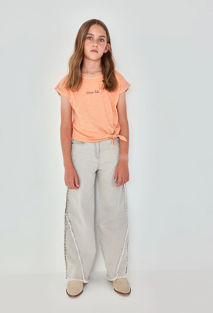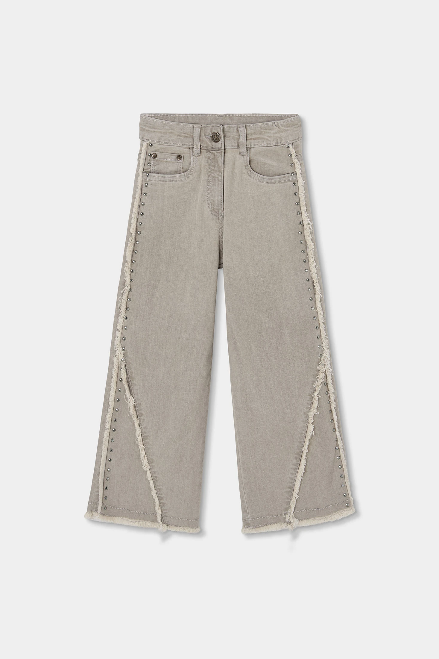 Pantalons texans grisos per a nena ideals per a un look modern i versàtil. Confeccionats en material d'alta qualitat, ofereixen durabilitat i comoditat. El seu disseny destaca amb detalls de xapetes metàl·liques decoratives i un acabat esfilagarsat a les vores, perfecte per a un estil casual chic. Disponible en talles des dels 2 anys fins als 14 anys, s'adapta a diferents edats. El seu color neutre facilita les combinacions amb samarretes i jerseis de diversos estils. És una opció pràctica i estilitzada per a l'ús diari.