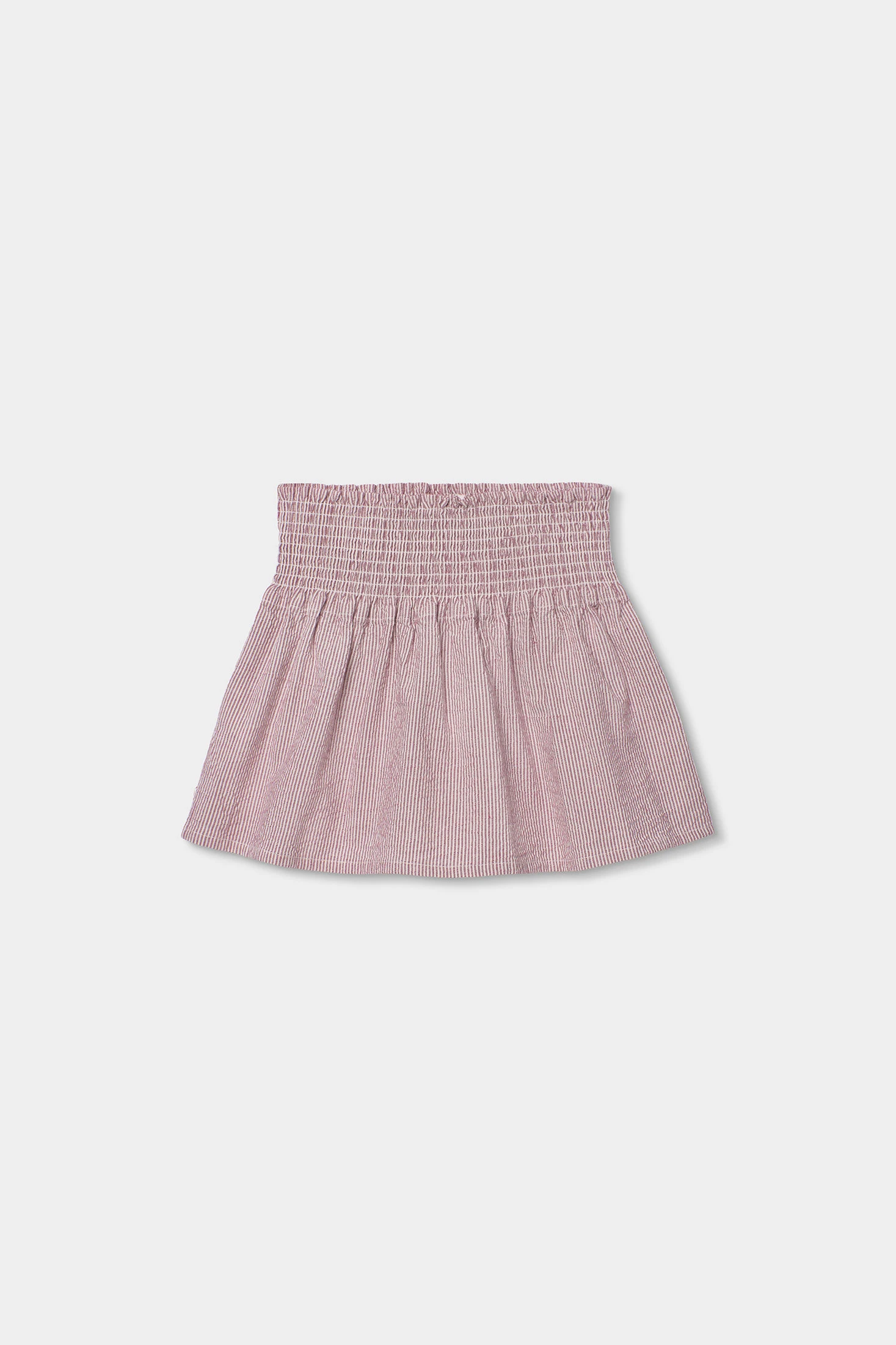 Faldilla llistada en seersucker amb ratlles teixides en color rosat i cru perfecte per a la temporada de primavera estiu. Confeccionada amb un material suau i còmode, ofereix calidesa ideal per a l'ús diari. Presenta un disseny amb una cintura elàstica que facilita l'ajustament. Les talles disponibles van des dels 2 anys fins als 14 anys, adaptant-se al creixement de les nenes.