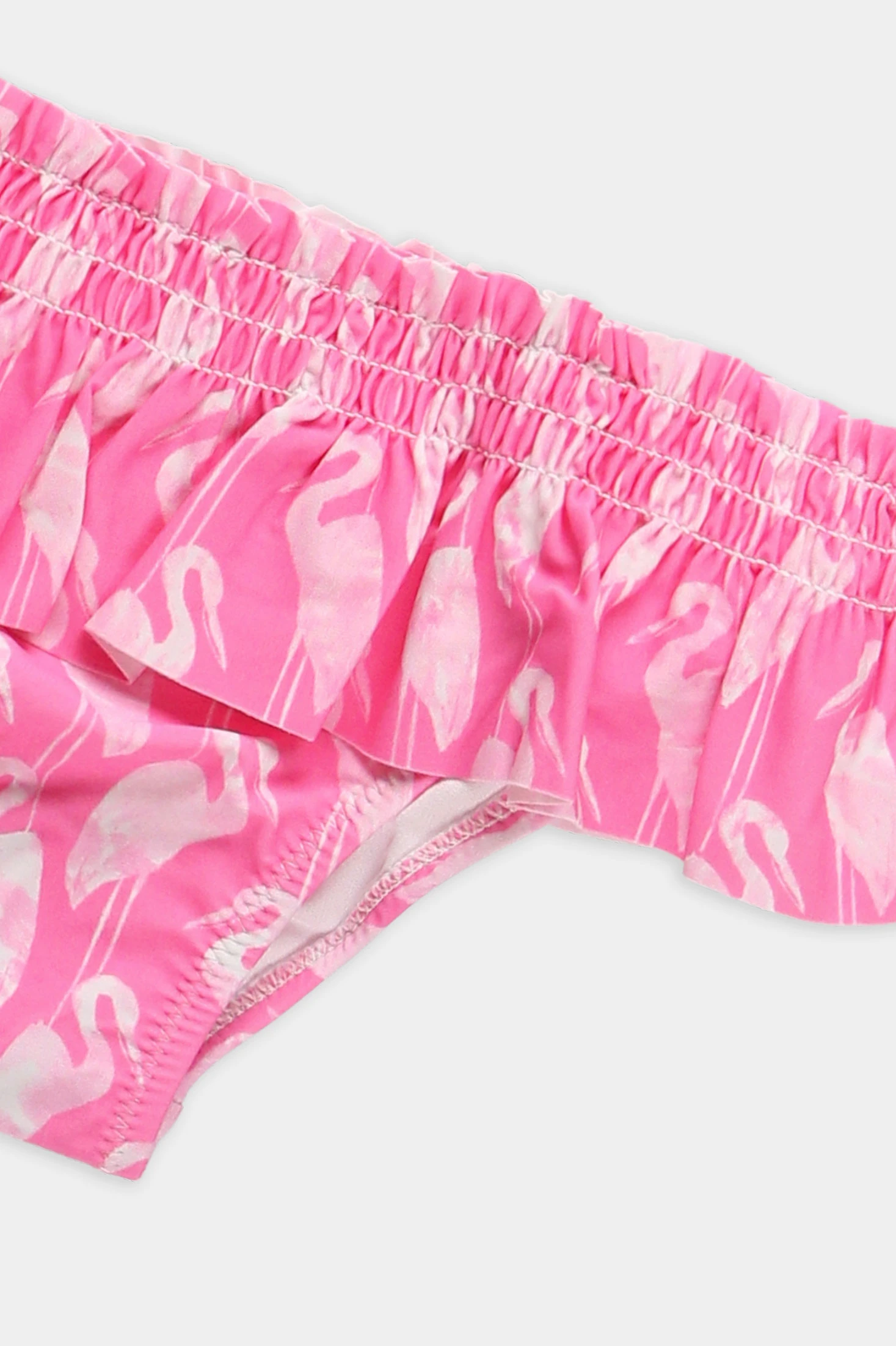 Banyador per a nena amb disseny rosa i dibuixos de flamencs, que aporta un toc divertit i acolorit. Ideal per a les més petites, està disponible en talles de 12 mesos a 10 anys. Fabricat amb material suau i protecció solar UPF50, garanteix benestar i llibertat de moviment. Els volants al voltant de la cintura afegeixen un detall alegre a la peça. Una opció perfecta per als dies càlids, combinant comoditat i estil en qualsevol ocasió.