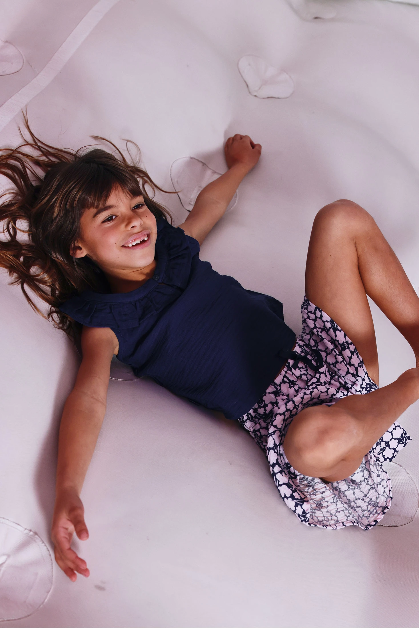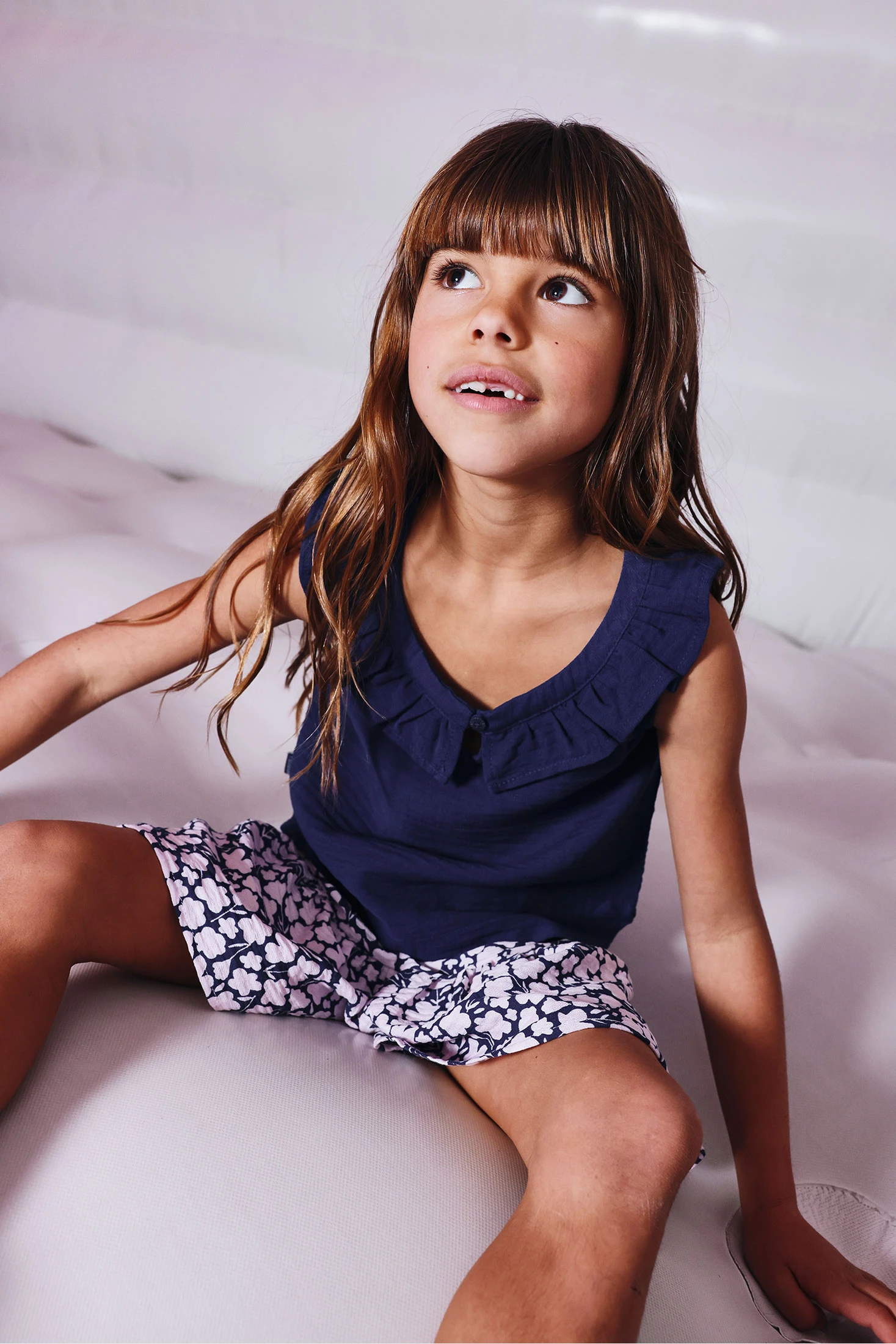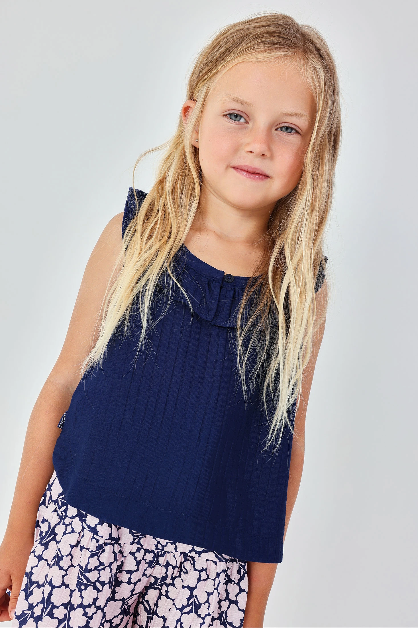 Brusa blava per a nena perfecta per a combinar estil i comoditat. Fet de material suau, compta amb un disseny de volants al coll que afegeix un toc elegant. Ideal per a nenes des de 12 mesos fins a 10 anys, ofereix versatilitat en diverses mides (12M, 18M, 2, 3, 4, 5, 6, 7, 8, 10). El seu color blau profund la fa fàcil de combinar amb diferents peces, aportant un toc chic a qualsevol conjunt. Una opció encantadora per a ocasions especials o sortides quotidianes.