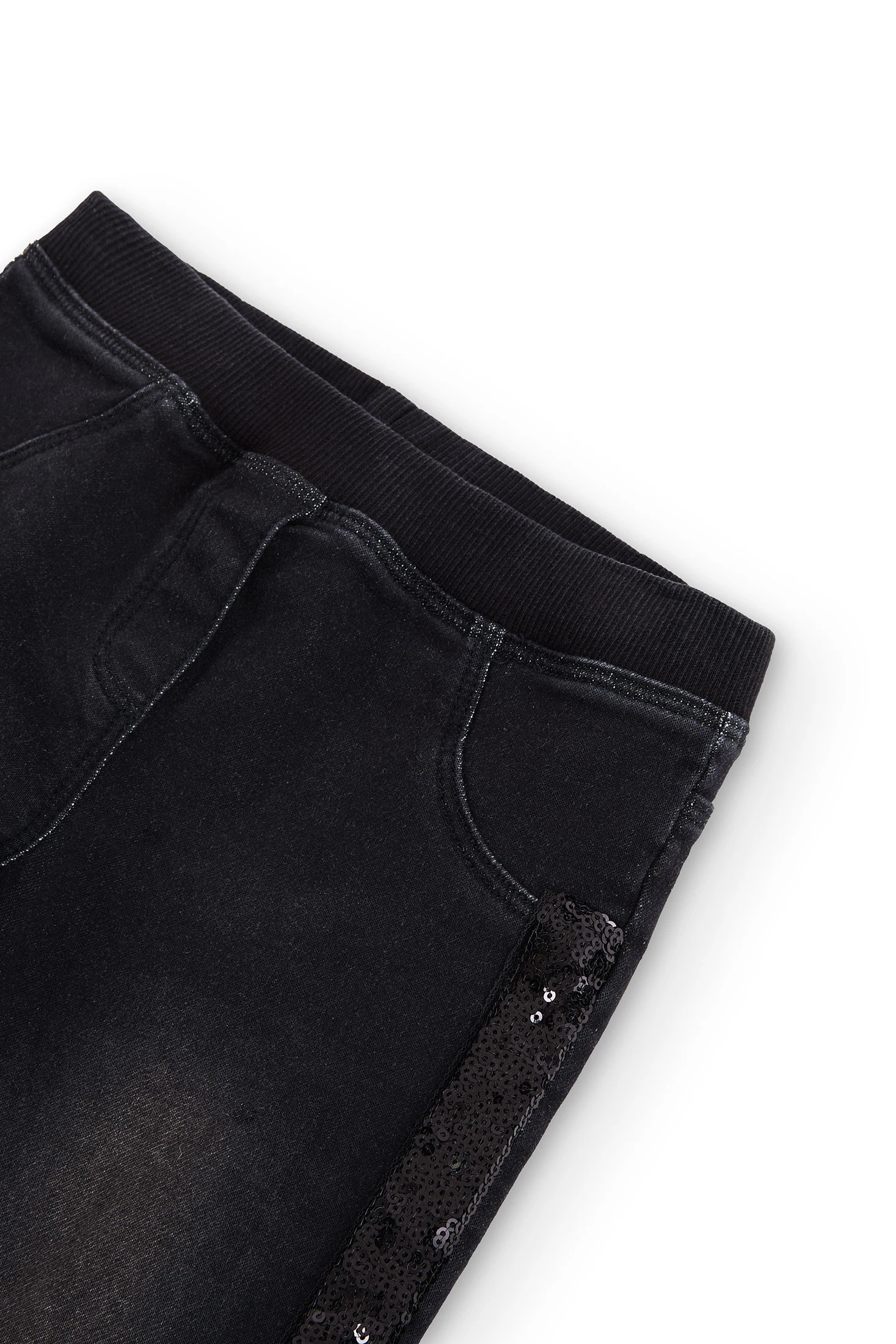 Pantaló denim punt elàstic de nena en negre