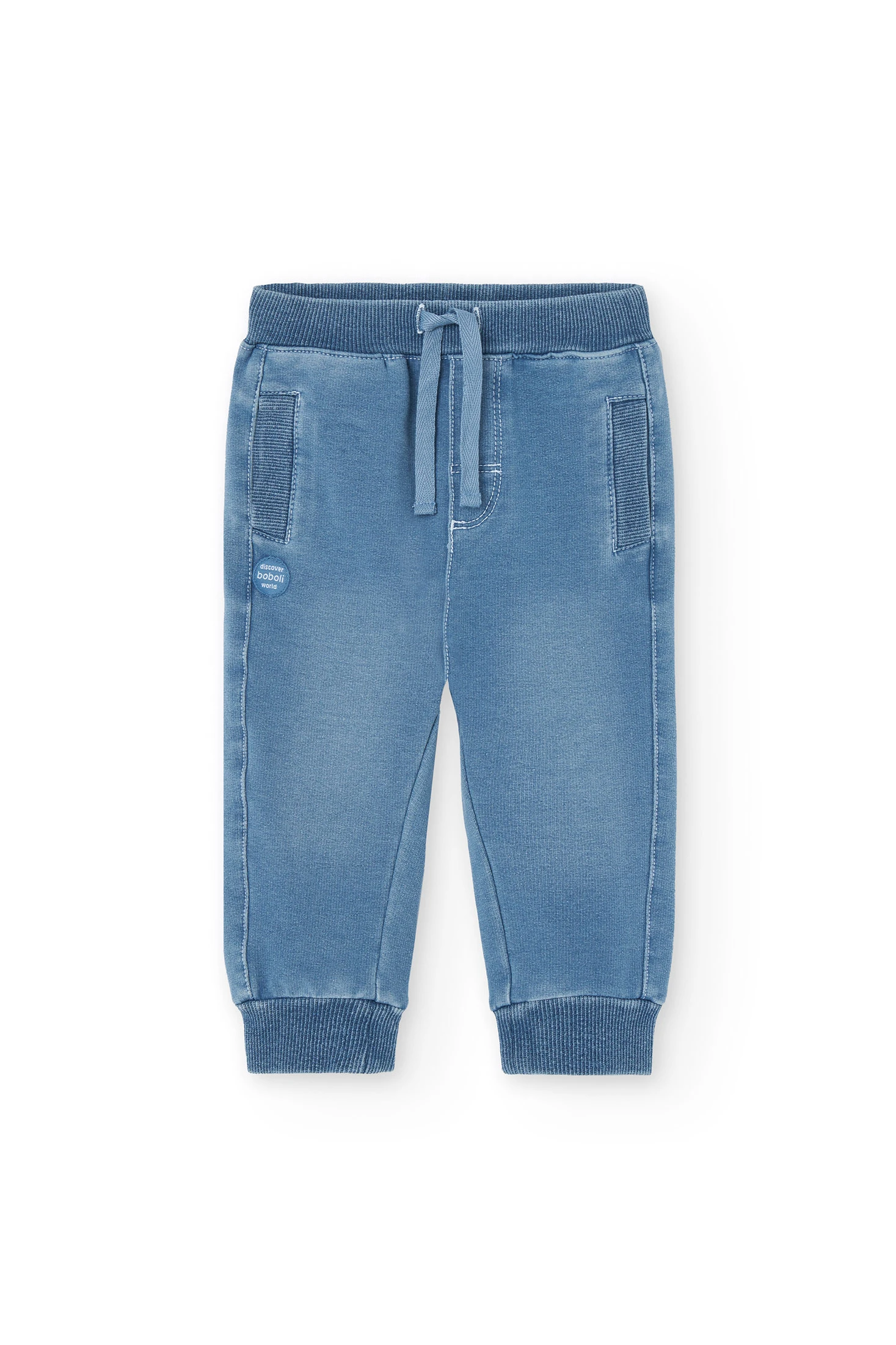 Aquests pantalons vaquers de folre polar per a nen són ideals per a la temporada de transició. El teixit de punt li confereix una textura suau i còmoda, perfecta per a la delicada pell del petit. La peça és de color blau BLEACH, un color que aporta un toc de frescor i alegria. El disseny és senzill i sense adorns, la qual cosa facilita la seva combinació amb altres peces. Les talles disponibles van des dels 6 mesos fins als 8 anys, cobrint un ampli ventall d'etapes infantils. Uns pantalons pràctics i versàtils per al dia a dia del teu fill.