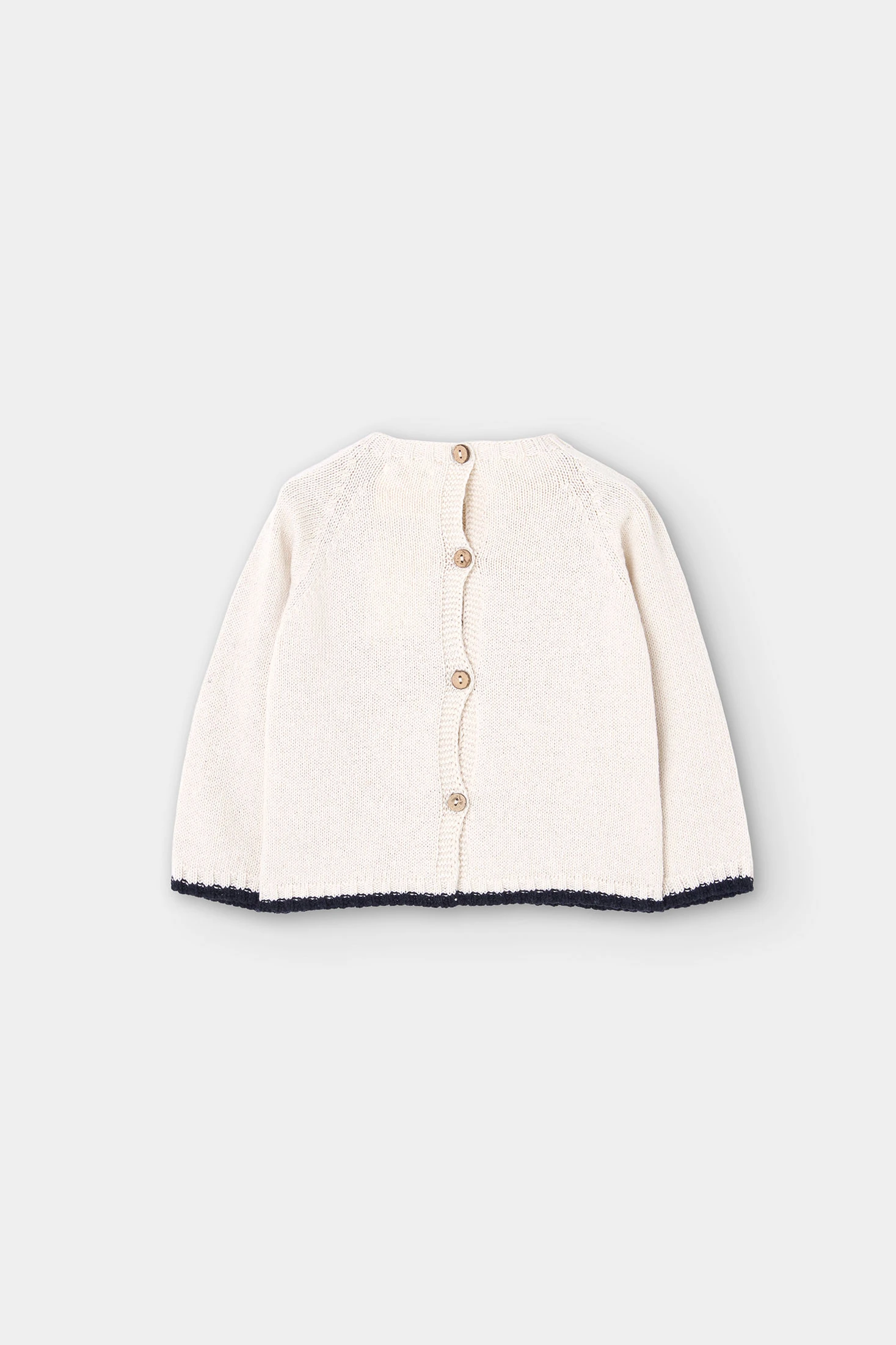 Jersey de punto para bebé en color blanco con un estampado de letras. Pertenece a la cápsula REBORN by Boboli, una colección confeccionada con hilo reciclado post-consumo. Confeccionado en un tejido suave y transpirable, proporciona calidez y confort durante las temporadas más frescas. Presenta cuello redondo y botones en el hombro que facilitan el vestir. Su diseño neutro y moderno combina fácilmente con cualquier prenda.