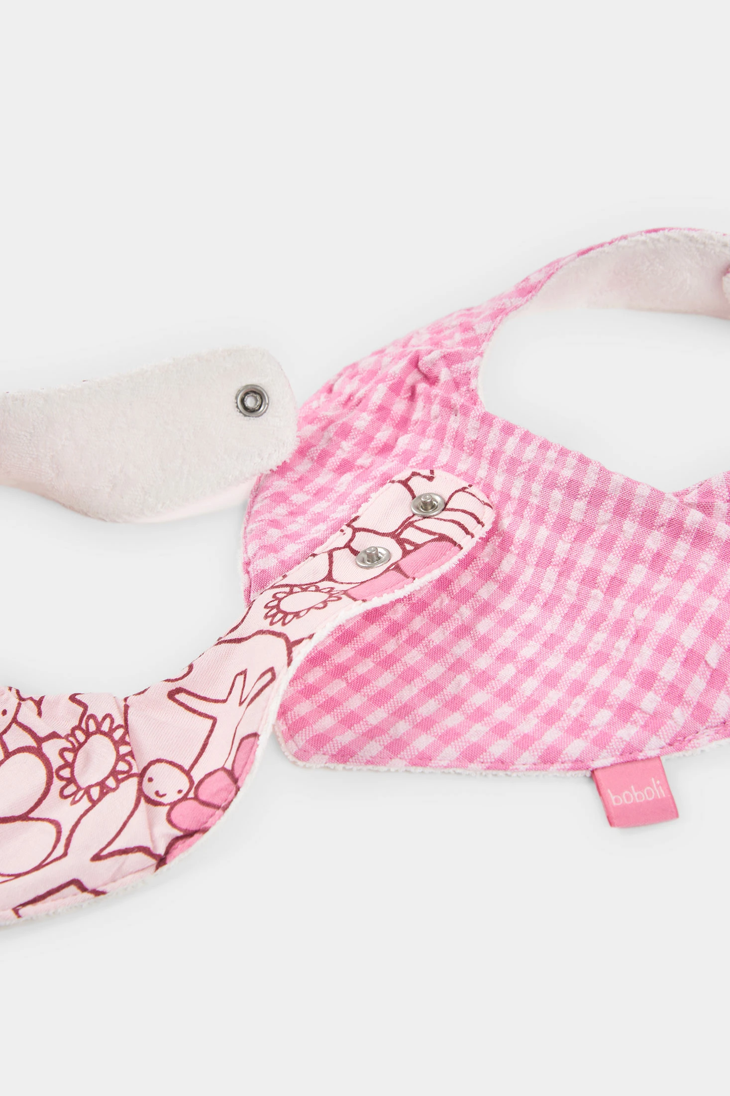 Pack de 2 pañuelos de algodón para niña perfecto para bebes. Confeccionados en suave tejido de algodón, ofrecen confort y delicadeza. Uno presenta un diseño a cuadros en tonos rosas en popelín, mientras que el otro tiene un estampado floral en la misma gama de colores. Ideales para edades desde 0 meses hasta 24 meses, pero de talla única, aseguran practicidad y estilo. Estos pañuelos, además de funcionales, añaden un toque encantador al conjunto diario de la pequeña, complementando atuendos con su dulce y atractivo diseño floral y geométrico.