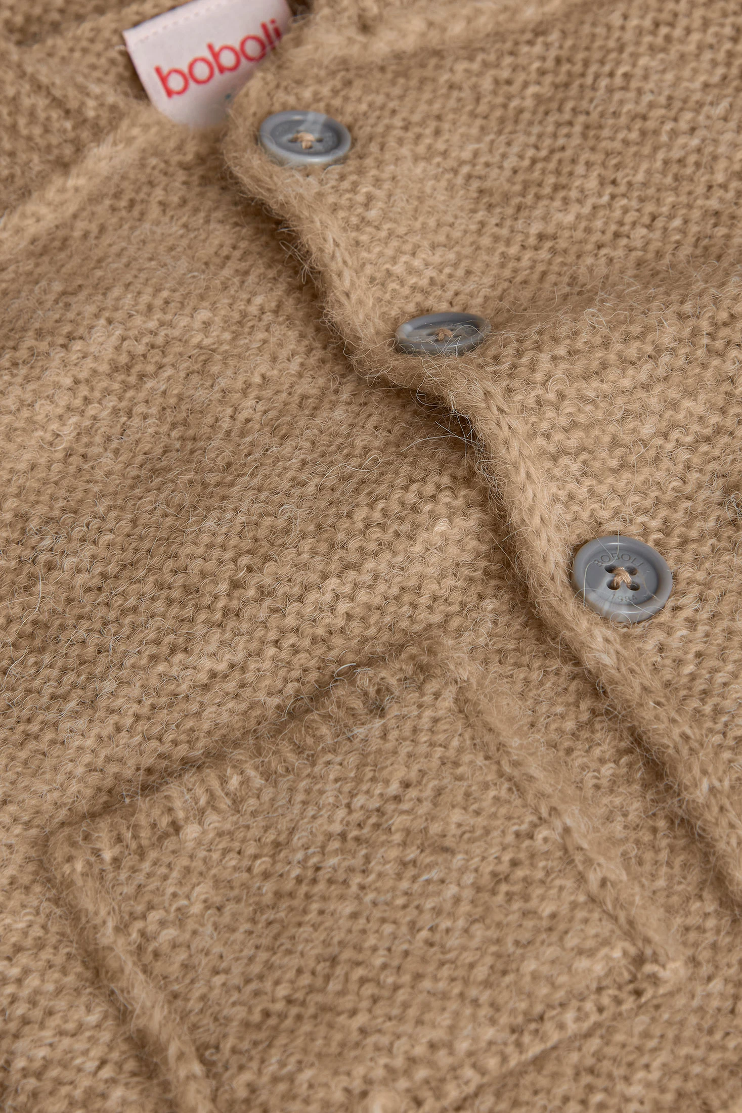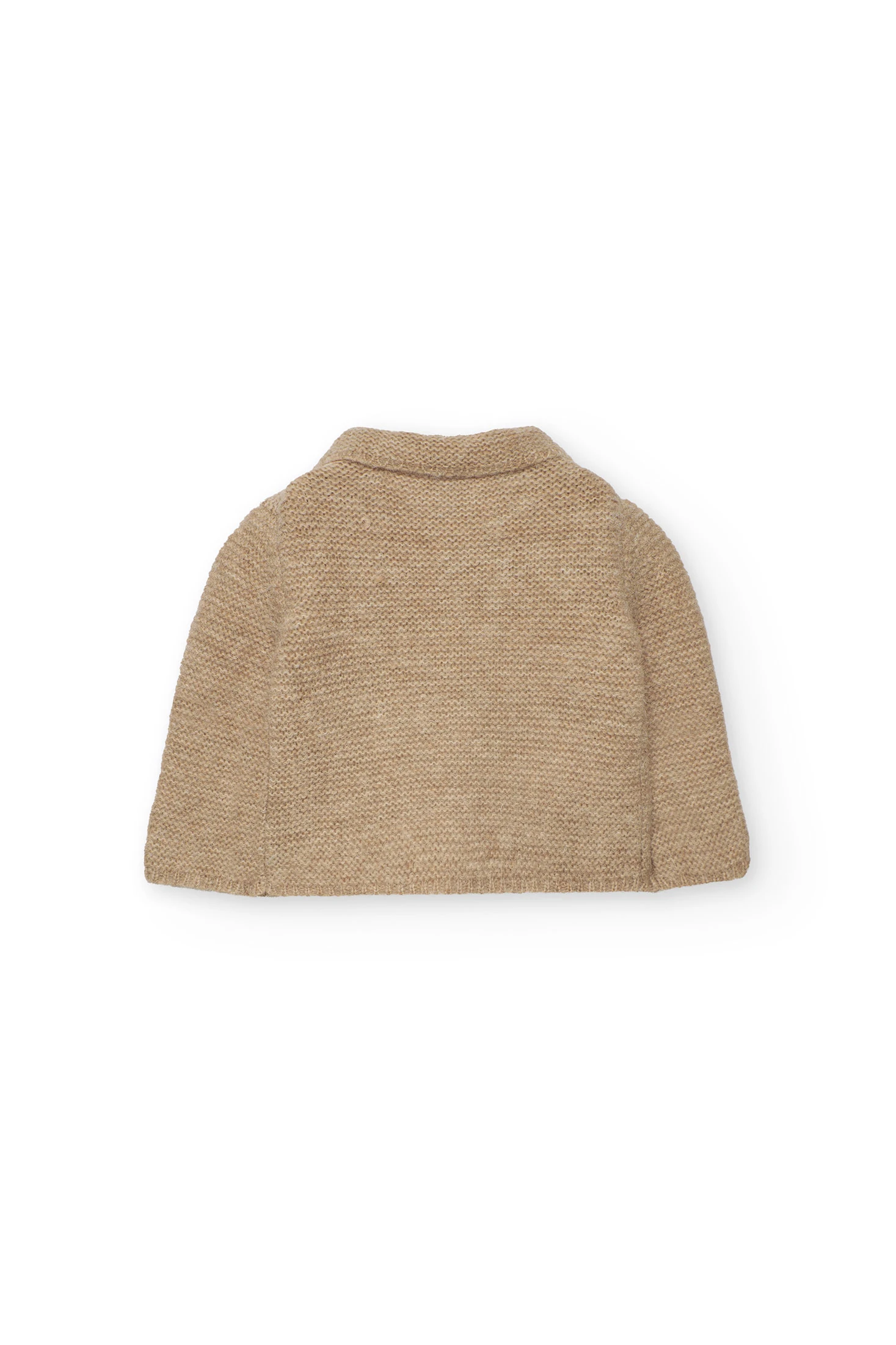 Chaqueta de punto beige para bebé, diseñada para ofrecer confort y calidez en los meses de otoño e invierno. Confeccionada en un tejido de punto suave y delicado, es ideal para proteger a tu pequeño del frío. El diseño clásico y sobrio en beige aporta un toque de sofisticación, siendo fácilmente combinable con pantalones o conjuntos formales para ocasiones especiales. Disponible en tallas desde 1 mes hasta los 2 años, esta chaqueta se convierte en una pieza versátil para el guardarropa de tu bebé.