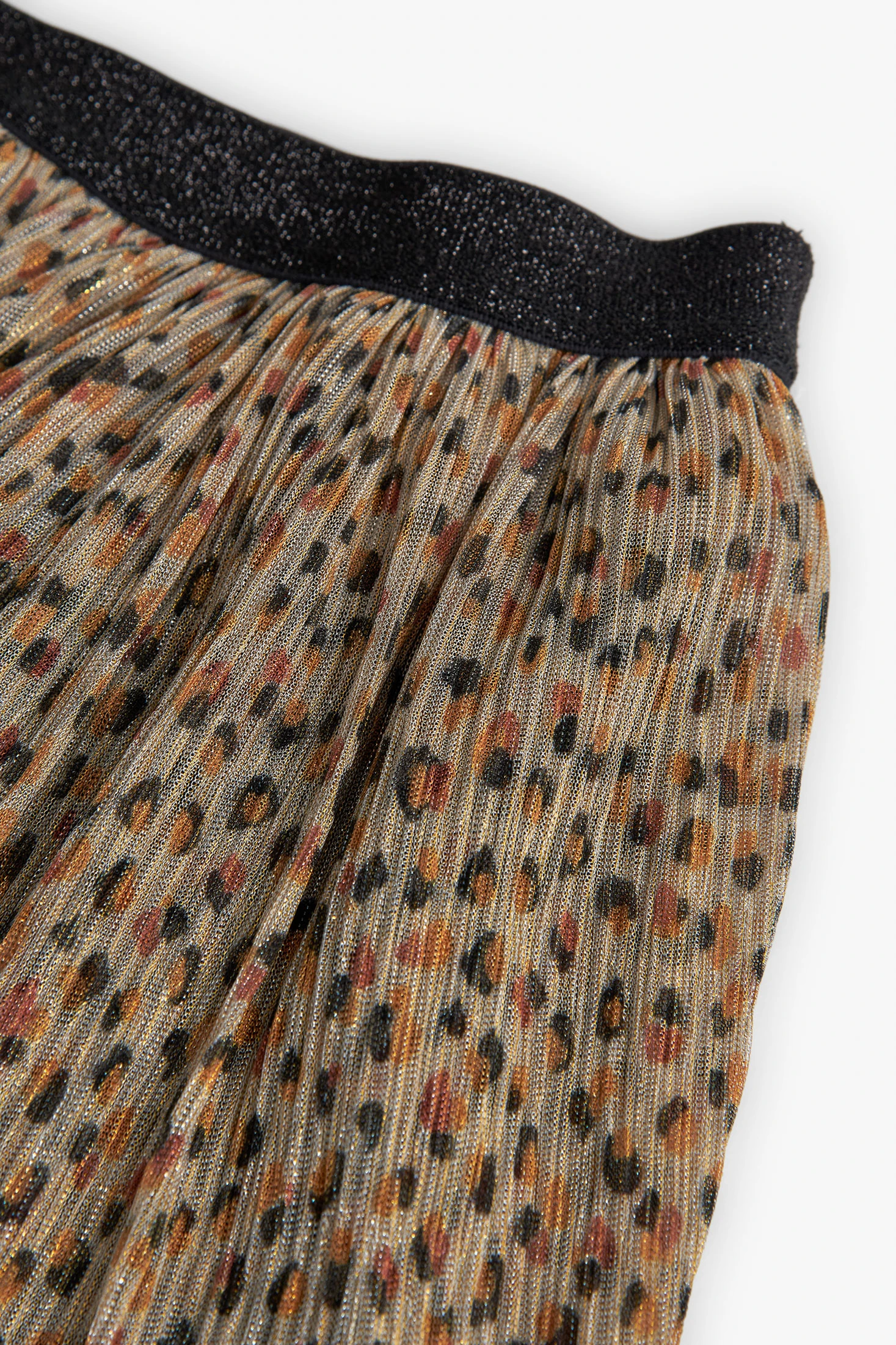 Falda de punto para niña con sofisticado estampado animal print que añade un toque moderno y divertido al guardarropa de tu pequeña. Fabricada en tejido de punto suave y cómodo, ideal para el uso diario, ofreciendo libertad de movimiento. Cintura elástica asegura un ajuste cómodo y adaptable. Disponible en tallas de 2 a 14 años, esta falda es perfecta para combinar con una camiseta lisa y leotardos para un look casual, o con una blusa para ocasiones más formales. Ideal para cualquier estación, es una prenda imprescindible para eventos especiales o salidas cotidianas.