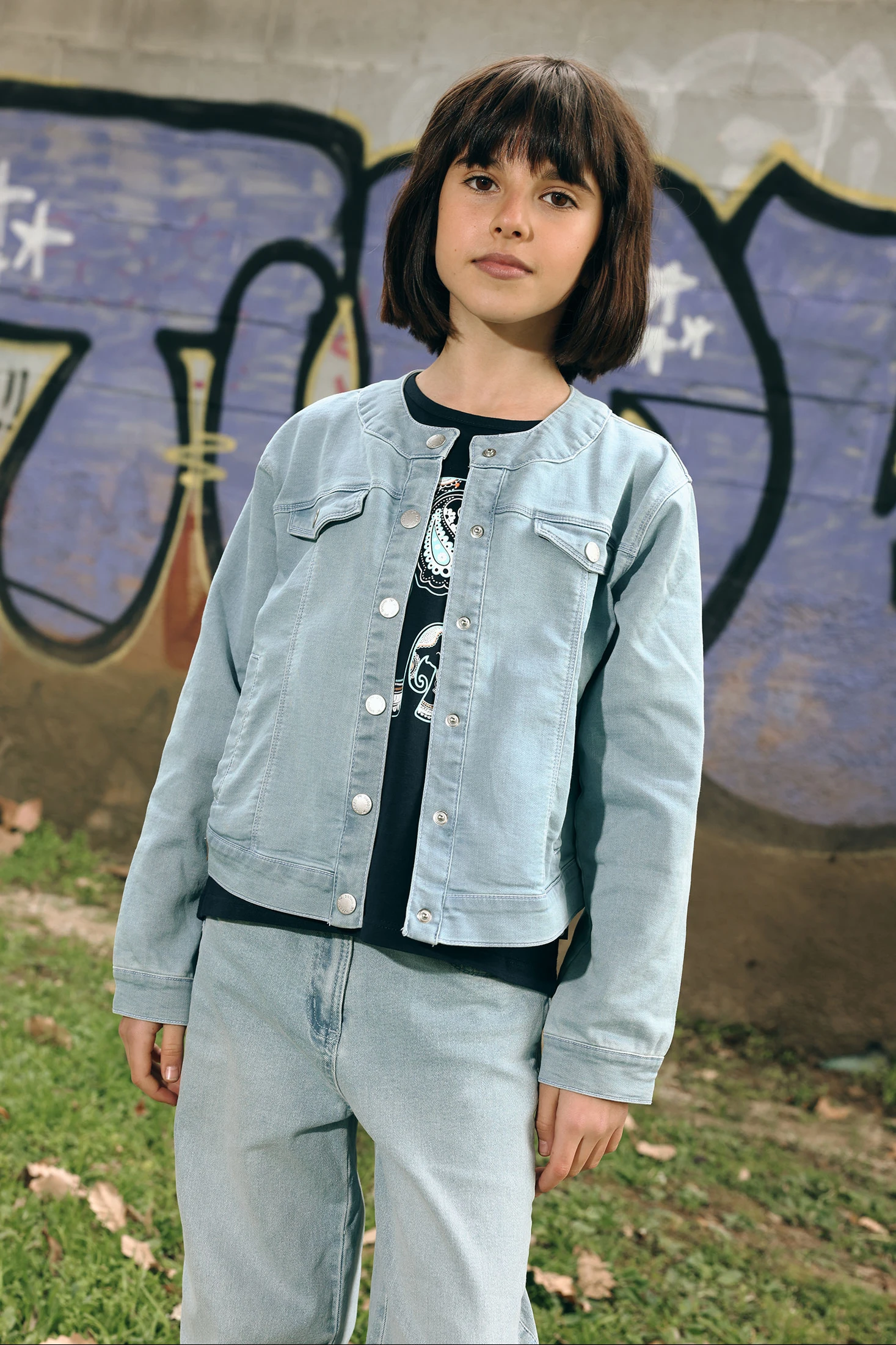 Cazadora denim bleach para niña, ideal para el entretiempo. Su diseño clásico, aporta un estilo versátil y moderno. Cuenta con dos bolsillos frontales y cierre de botones a presión, lo que la hace práctica y funcional. Las tallas van desde 12 meses hasta 10 años, adaptándose al crecimiento de la niña. Perfecta para complementar con vestidos casuales o pantalones.