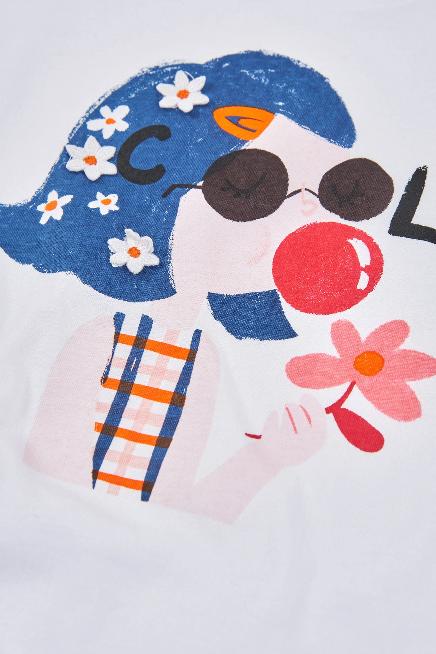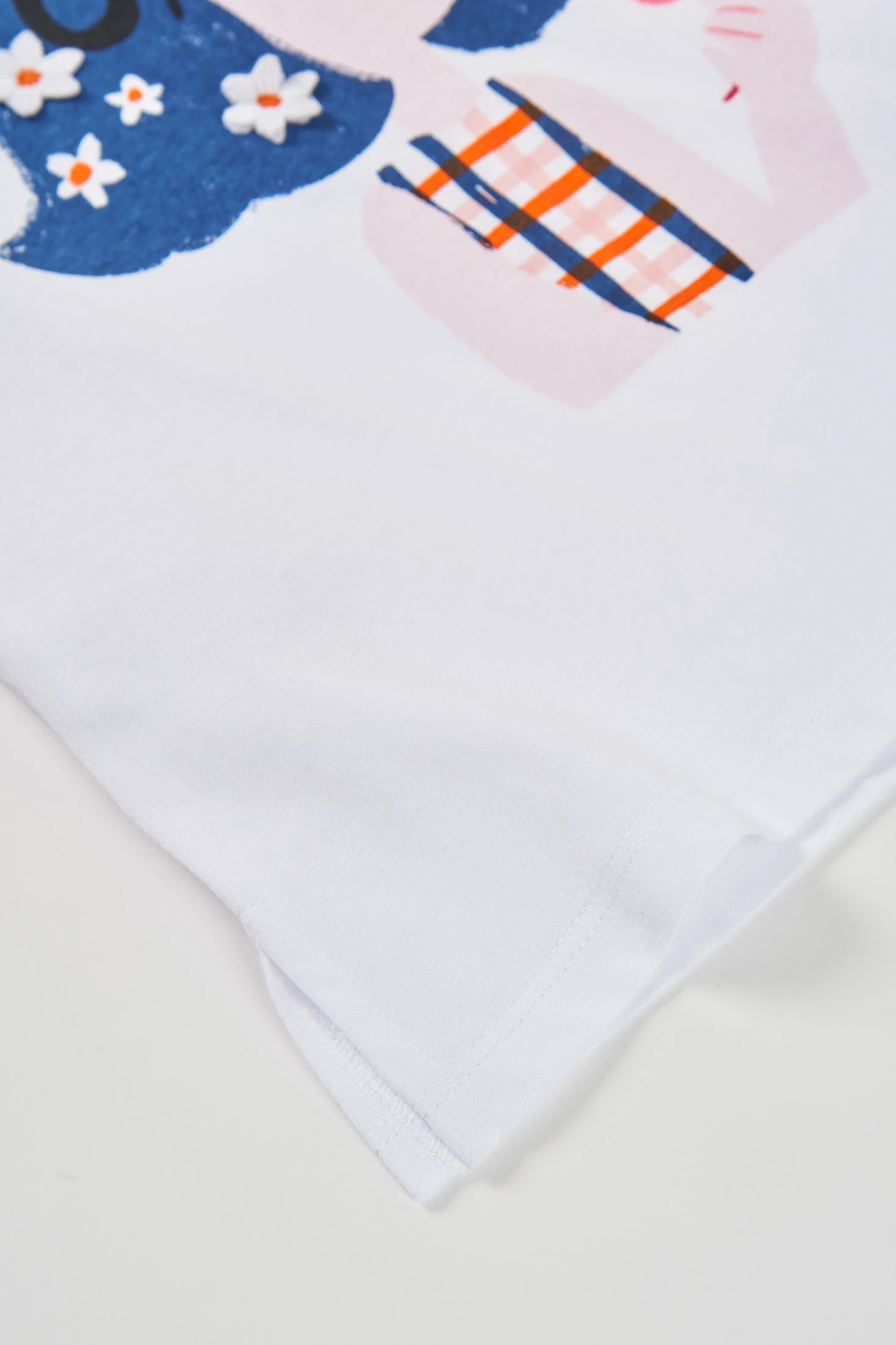 Esta camiseta de algodón para niña es ideal para el día a día. Con un estampado colorido y divertido de un personaje, es perfecta para añadir un toque de alegría al guardarropa. Su material de algodón asegura comodidad y frescura, adecuada para las estaciones más cálidas. Disponible en tallas desde 12 meses hasta 14 años, se adapta a diferentes edades. Viene en un atractivo color blanco que combina fácilmente con otras prendas. Su diseño de manga corta y cuello redondo facilita su uso diario, brindando estilo y funcionalidad.