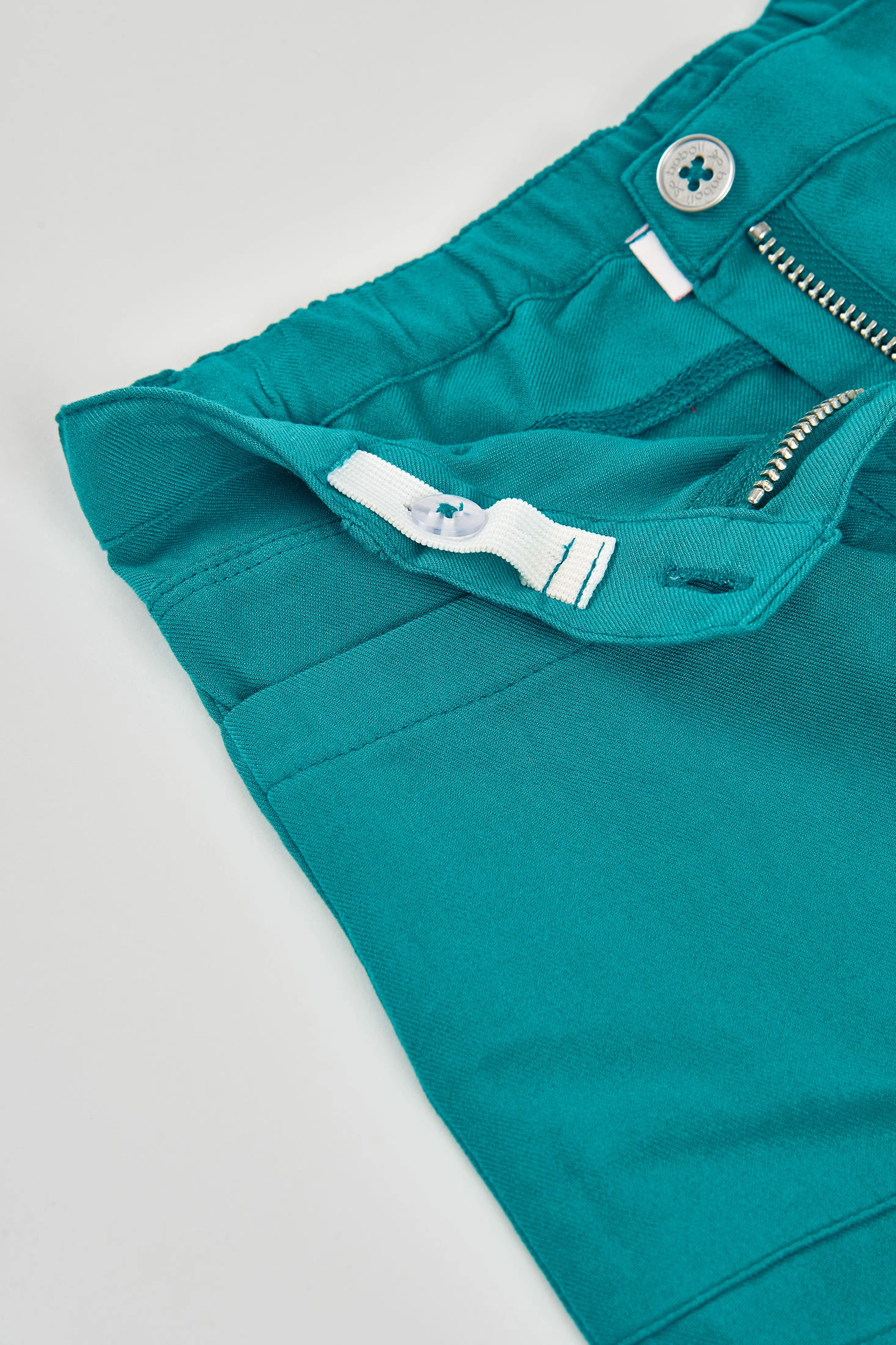 Bermudas para niña de un atractivo color azul, confeccionadas con un material suave y cómodo, perfecto para el uso diario. Con un diseño liso y práctico, cuentan con bolsillos frontales y un cierre de botón que facilita su ajuste. Ideal para los meses más cálidos, estas bermudas ofrecen frescura y libertad de movimiento. Disponibles en tallas desde los 2 años hasta los 14 años, permiten combinaciones versátiles con camisetas y blusas para un estilo casual y fresco.
