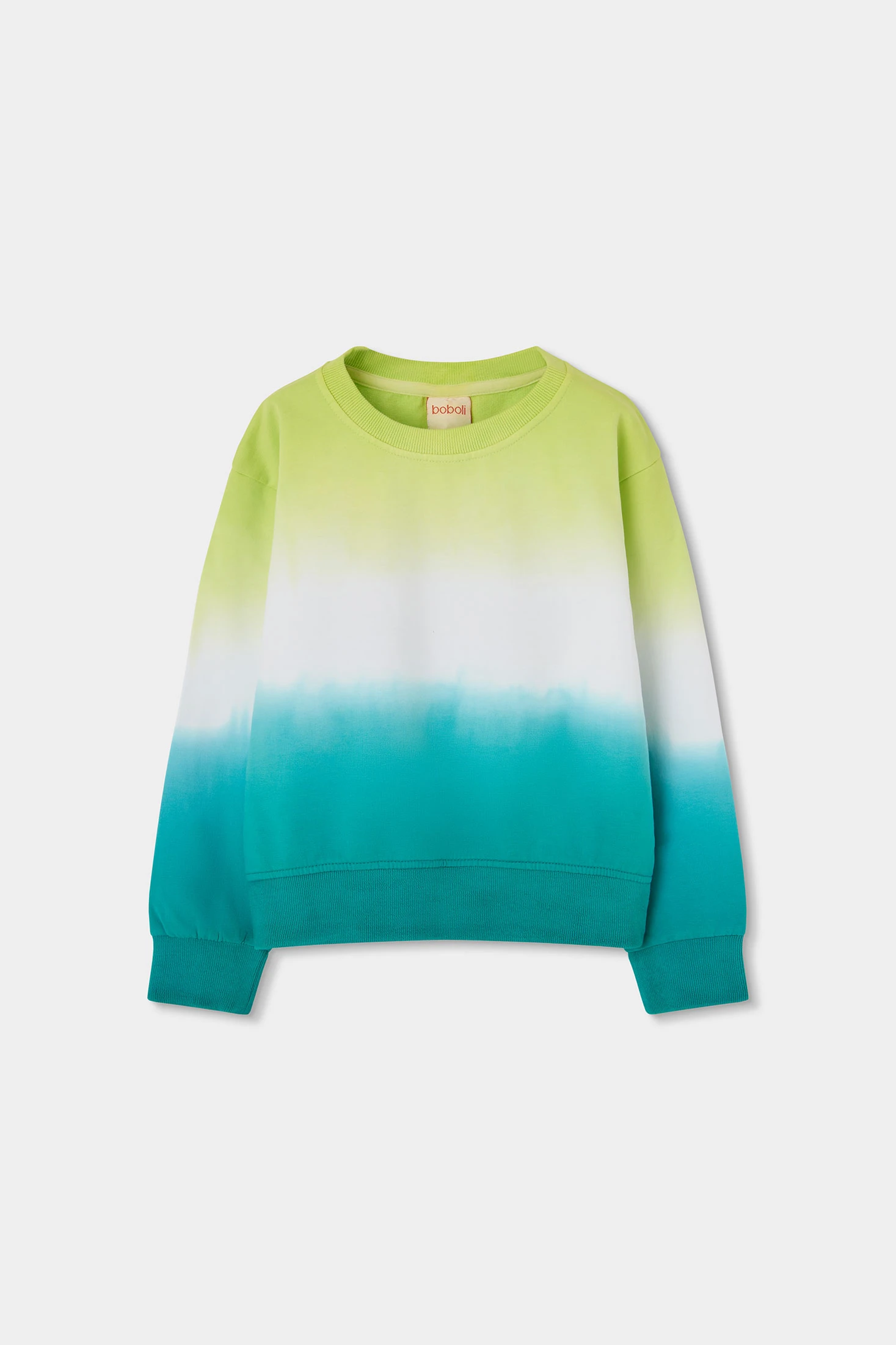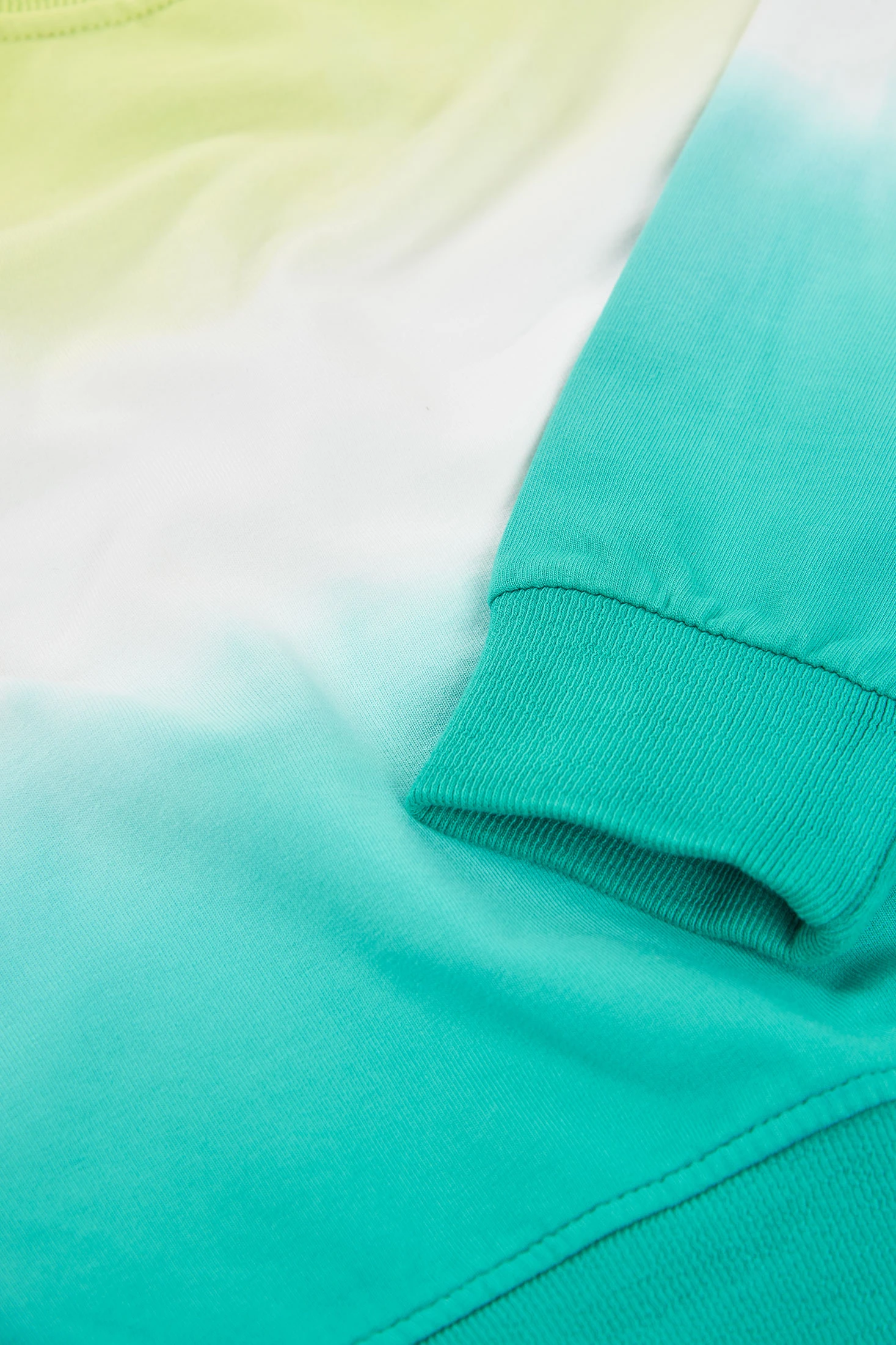 Sudadera de felpa para niña con un tejido suave que brinda comodidad y calidez. Presenta un diseño degradado en tonos verde y azul, perfecto para darle un toque de estilo vibrante. Con cuello redondo y mangas largas, resulta adecuada para los días de verano que aun refresca o las noches al aire libre. Disponible en tallas desde 2 años hasta 14 años. Combínala con jeans o leggins para un look casual y moderno.