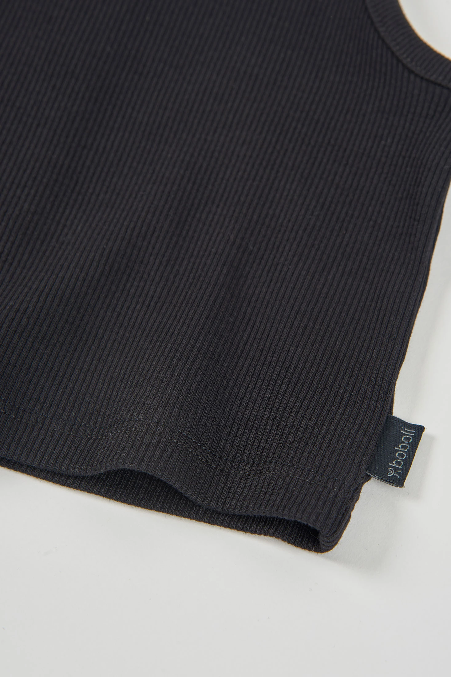 Camiseta de punto negro para niña, una prenda básica y cómoda para el día a día. Fabricada con un tejido elástico, ofrece flexibilidad y confort. De diseño sencillo y sin estampados, presenta un cuello redondo y estilo minimalista. Está disponible en tallas desde 12 meses hasta 14 años. Su color negro la hace versátil para combinar con diversos estilos. Ideal para usar sola en verano o bajo chaquetas en climas más fríos, es una pieza esencial en el guardarropa infantil.