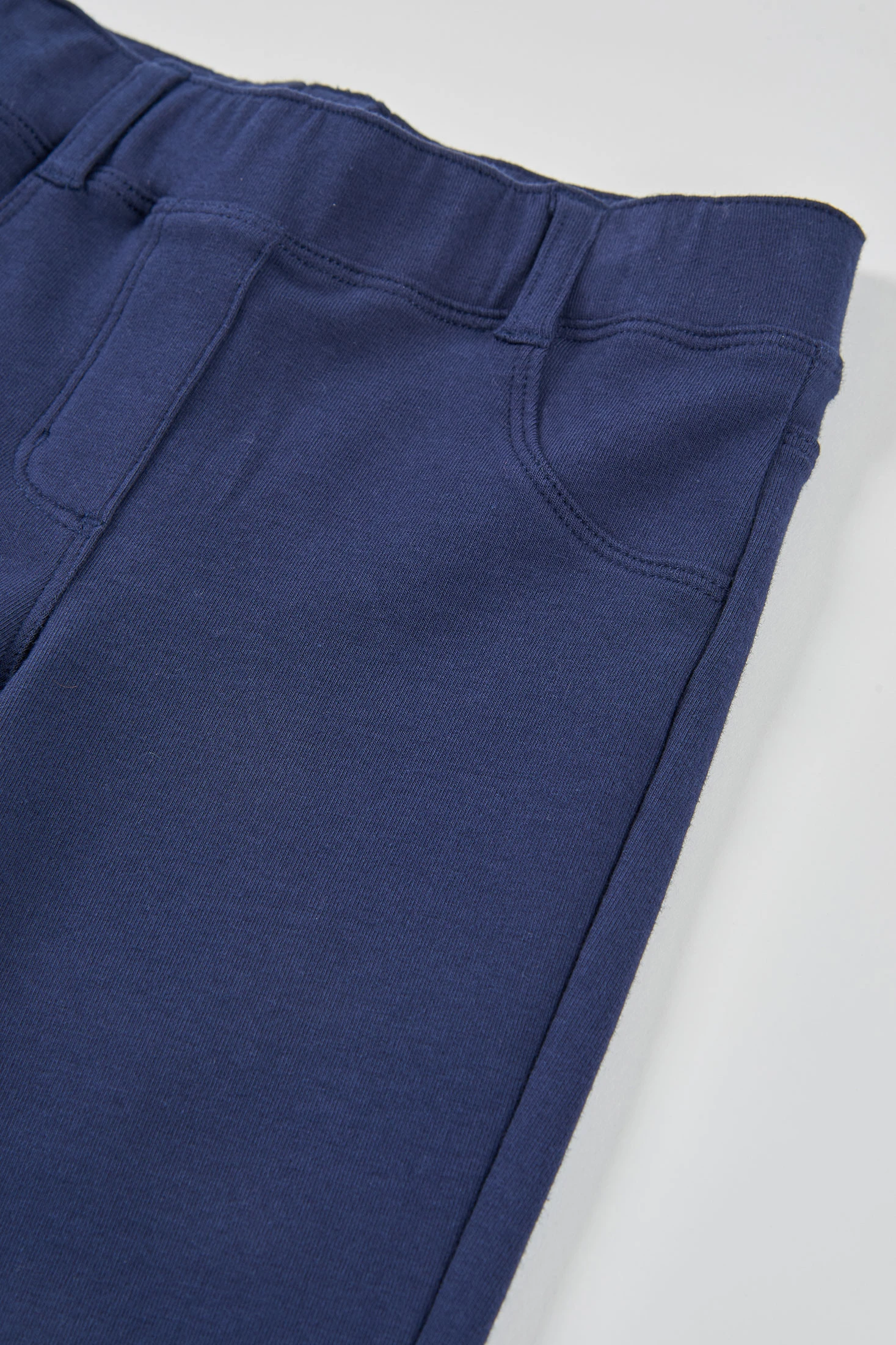 Pantalón de felpa para niña, opción ideal para la primavera. Su color azul marino le otorga un estilo versátil y clásico, fácil de combinar con otras prendas. El tejido de felpa proporciona calor y comodidad, perfecto para actividades diarias. Diseñado con una cintura elástica, asegura un ajuste cómodo y seguro. Disponible en tallas desde 12 meses hasta 14 años, se adapta al crecimiento de tu niña. Su diseño liso permite múltiples combinaciones de estilo, siendo una prenda básica y funcional en el armario infantil.