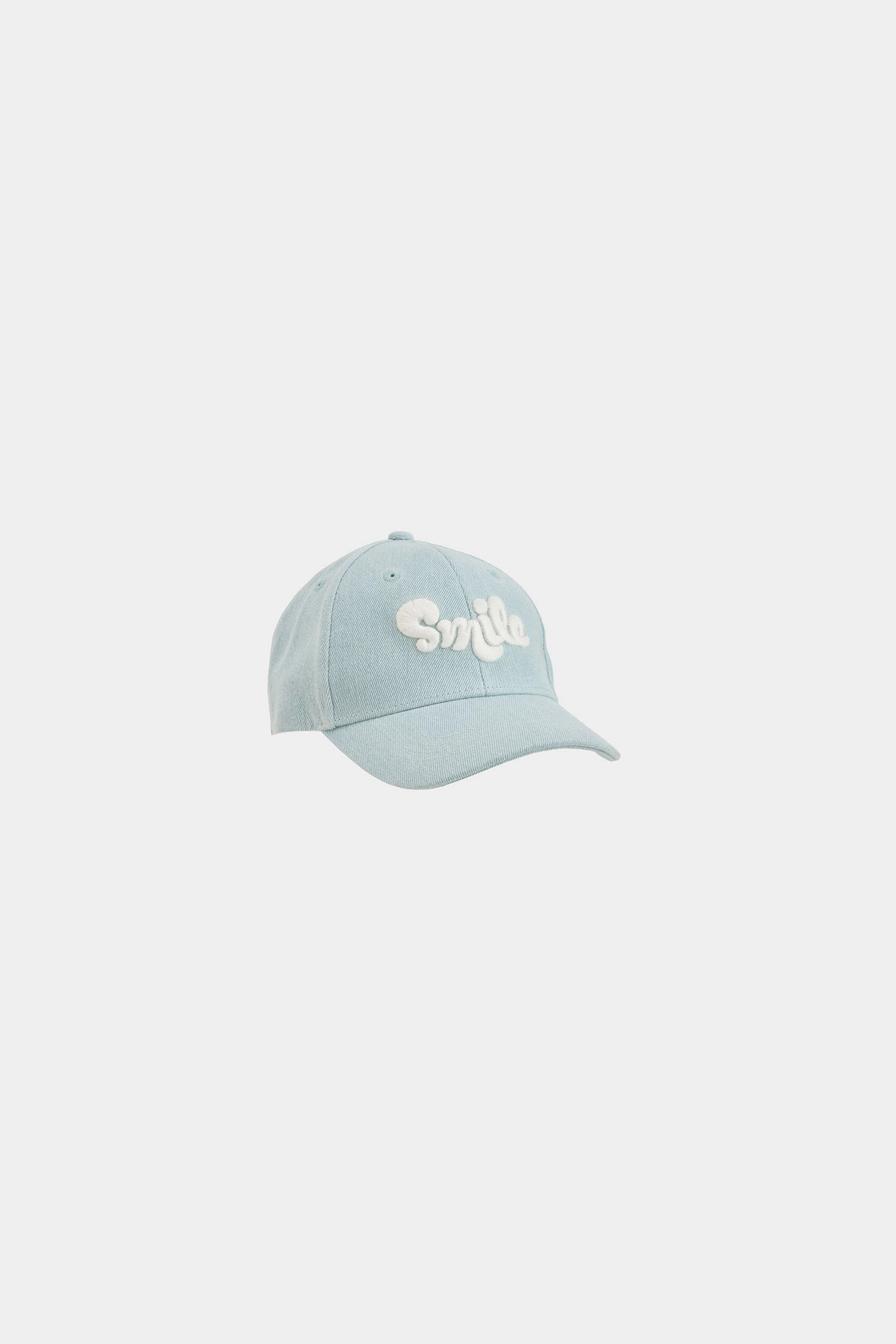 Gorra denim para niños perfecta para agregar un toque de estilo casual. Confeccionada en tejido denim, ofrece comodidad y durabilidad. Su diseño en color azul claro incluye la palabra "Smile" en letras delanteras, añadiendo un detalle divertido. Ideal para proteger del sol mientras complementa cualquier atuendo. Disponible en tallas desde 12 meses hasta 12 años: S/48, M/50, L/52, XL/54. Una opción estilizada para todas las estaciones.