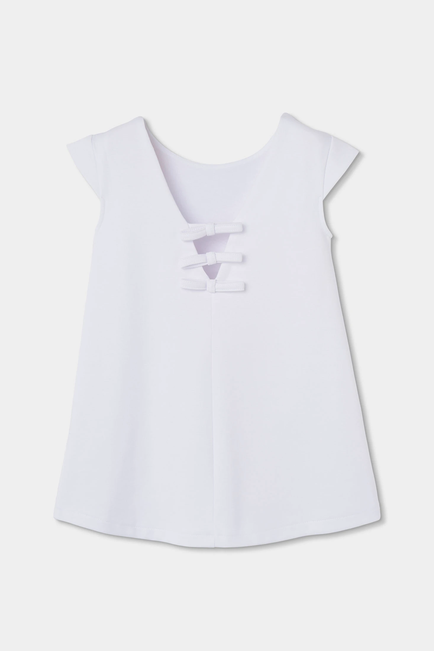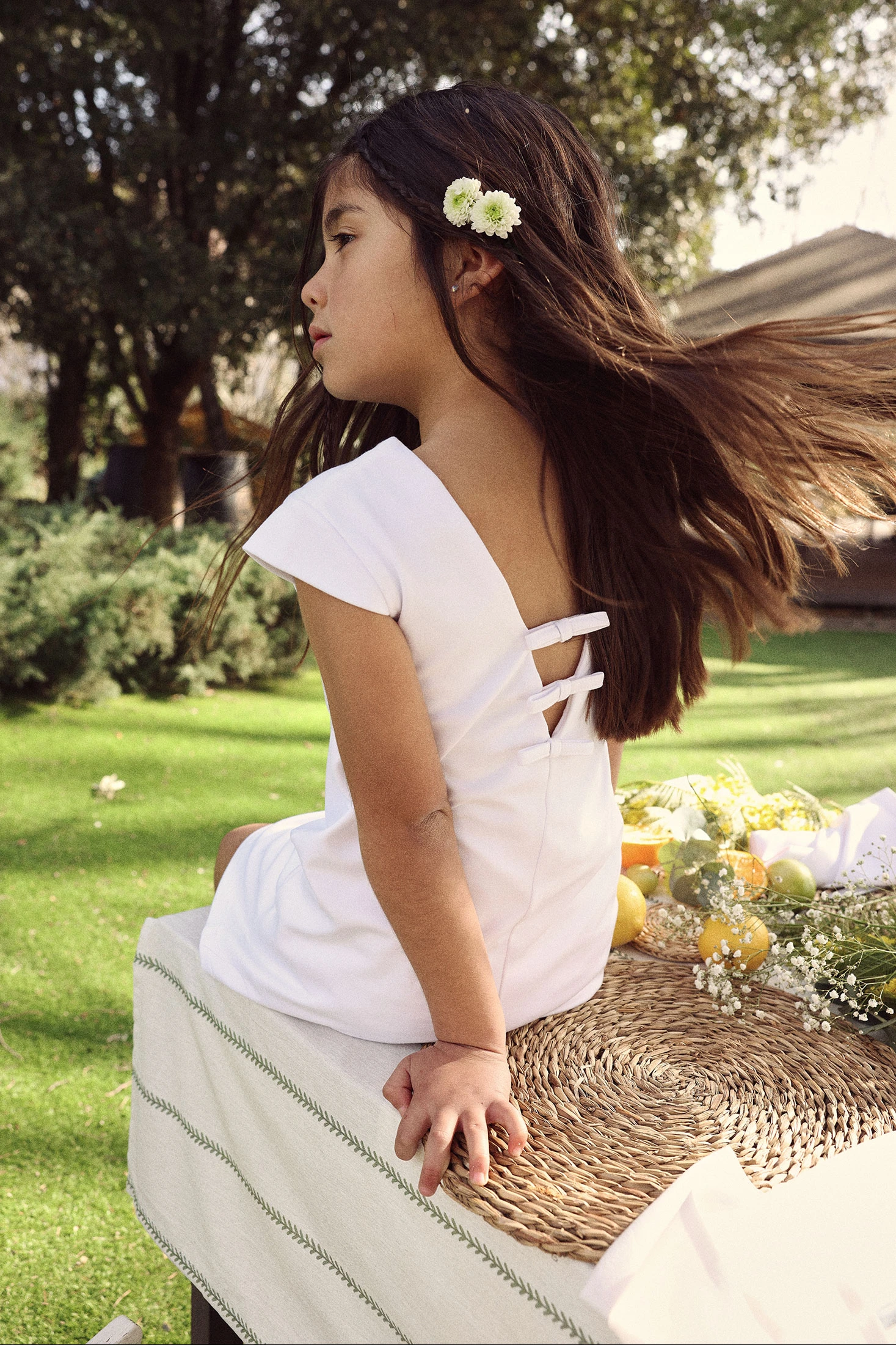 Vestido para niña en color blanco con delicado estampado de flores, una opción encantadora para la primavera y el verano. Su tejido ligero y transpirable ofrece frescura en los días cálidos. El diseño con corte suelto aporta comodidad y libertad de movimiento, ideal para paseos o eventos casuales. Disponible en tallas desde 2 hasta 14 años.