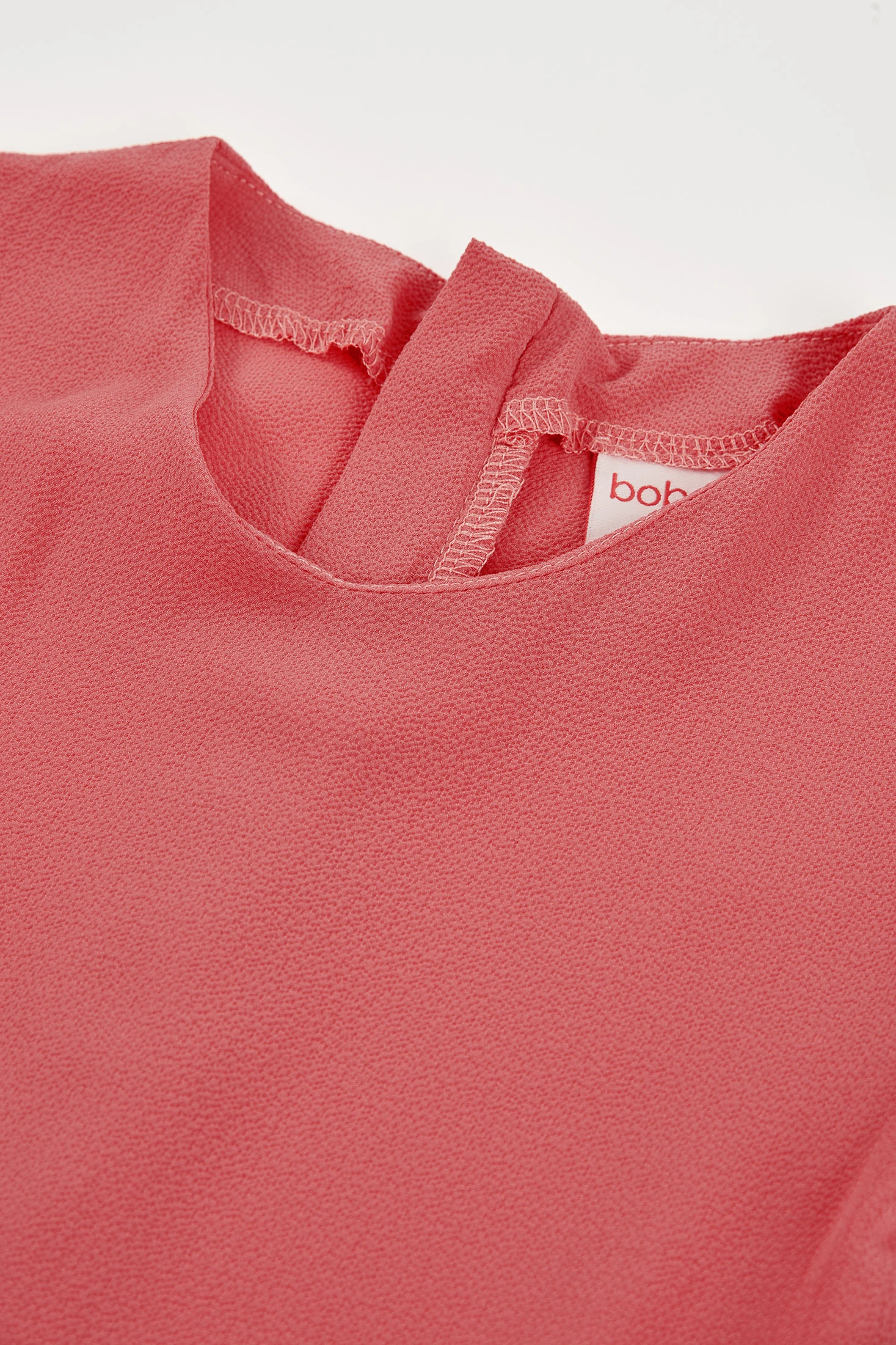 Mono sin mangas para niña ideal para ocasiones especiales. Confeccionado en un material de crepe suave, ofrece comodidad y un estilo elegante. El diseño rosa cuenta con volantes en las mangas y un cinturón ajustable que añade un toque encantador. Disponible en tallas de 2 años a 14 años. Perfecto para combinar con una chaqueta ligera o accesorios sencillos, este mono es una opción versátil para destacar en celebraciones o eventos familiares.