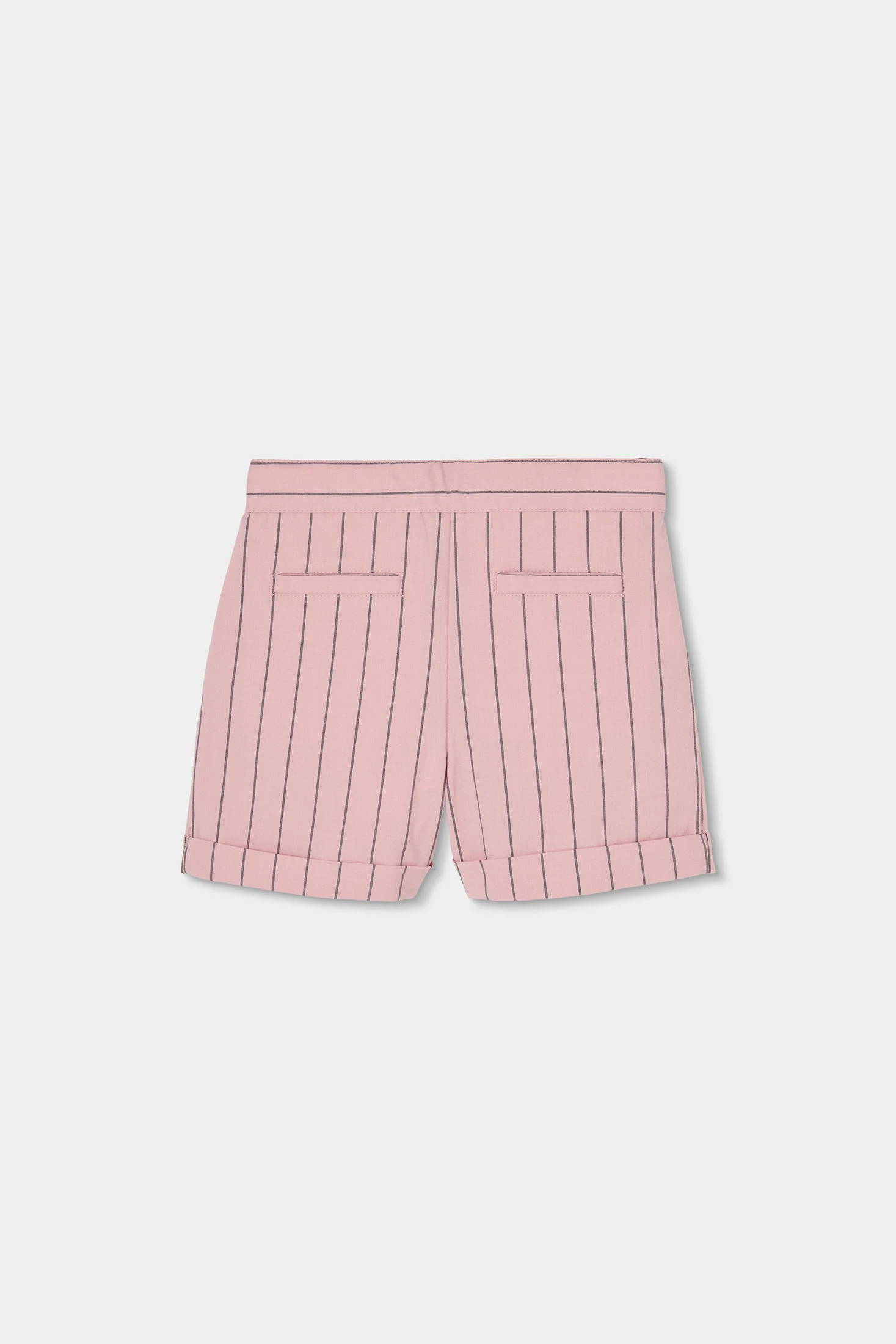 Bermudas de tejido listado para niña, perfectas para un estilo chic y cómodo. Con un diseño elegante en color rosa con finas rayas, están confeccionadas en un material suave y resistente. Ideales para edades desde 2 hasta 14 años, se ajustan cómodamente para un uso diario. Su corte clásico con pequeños dobleces en el bajo las hace versátiles, combinables con blusas o camisetas en tonos claros. Perfectas para ocasiones casuales o más formales, añaden un toque elegante a cualquier conjunto, aportando frescura y estilo a la vestimenta infantil.