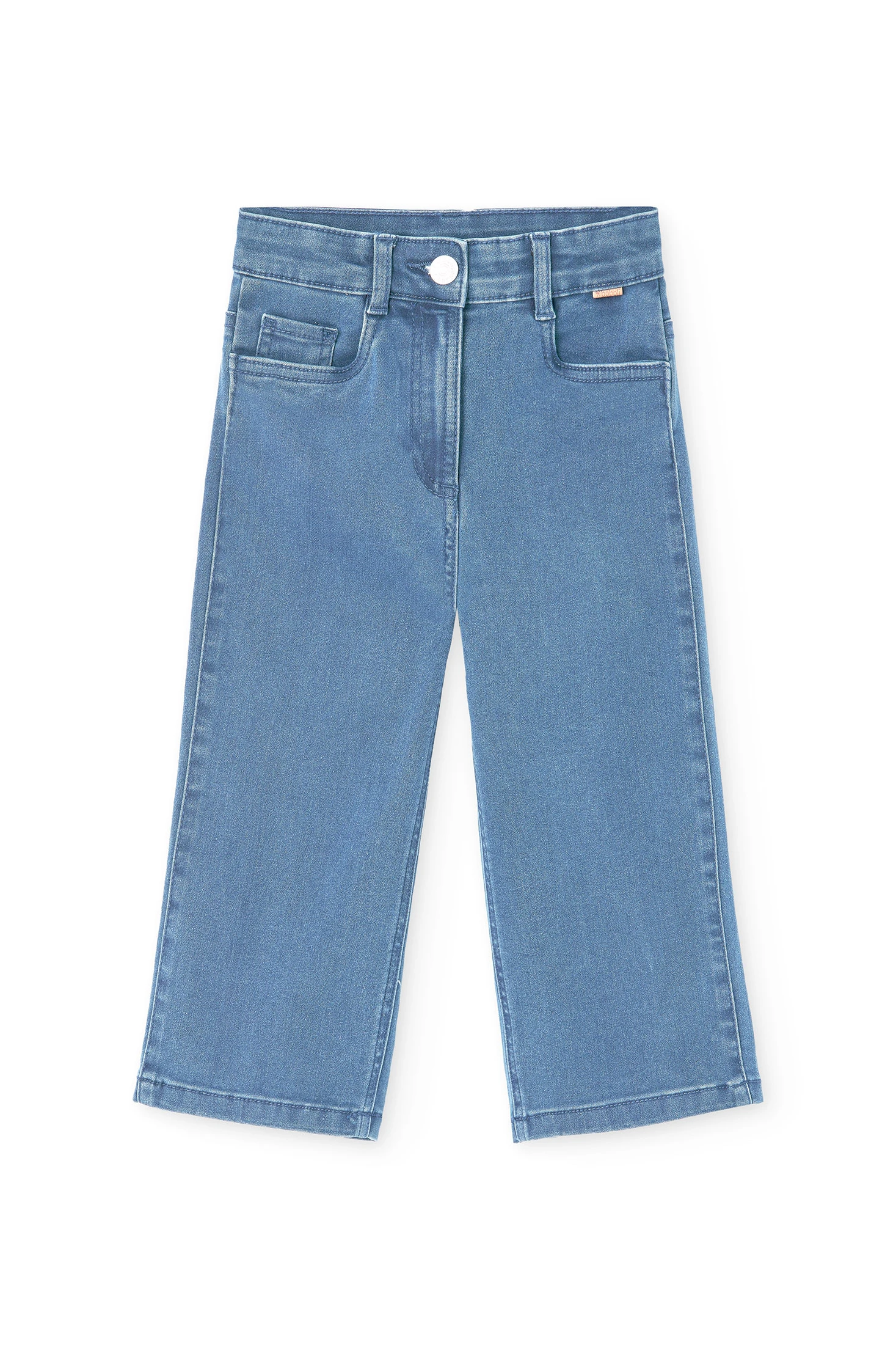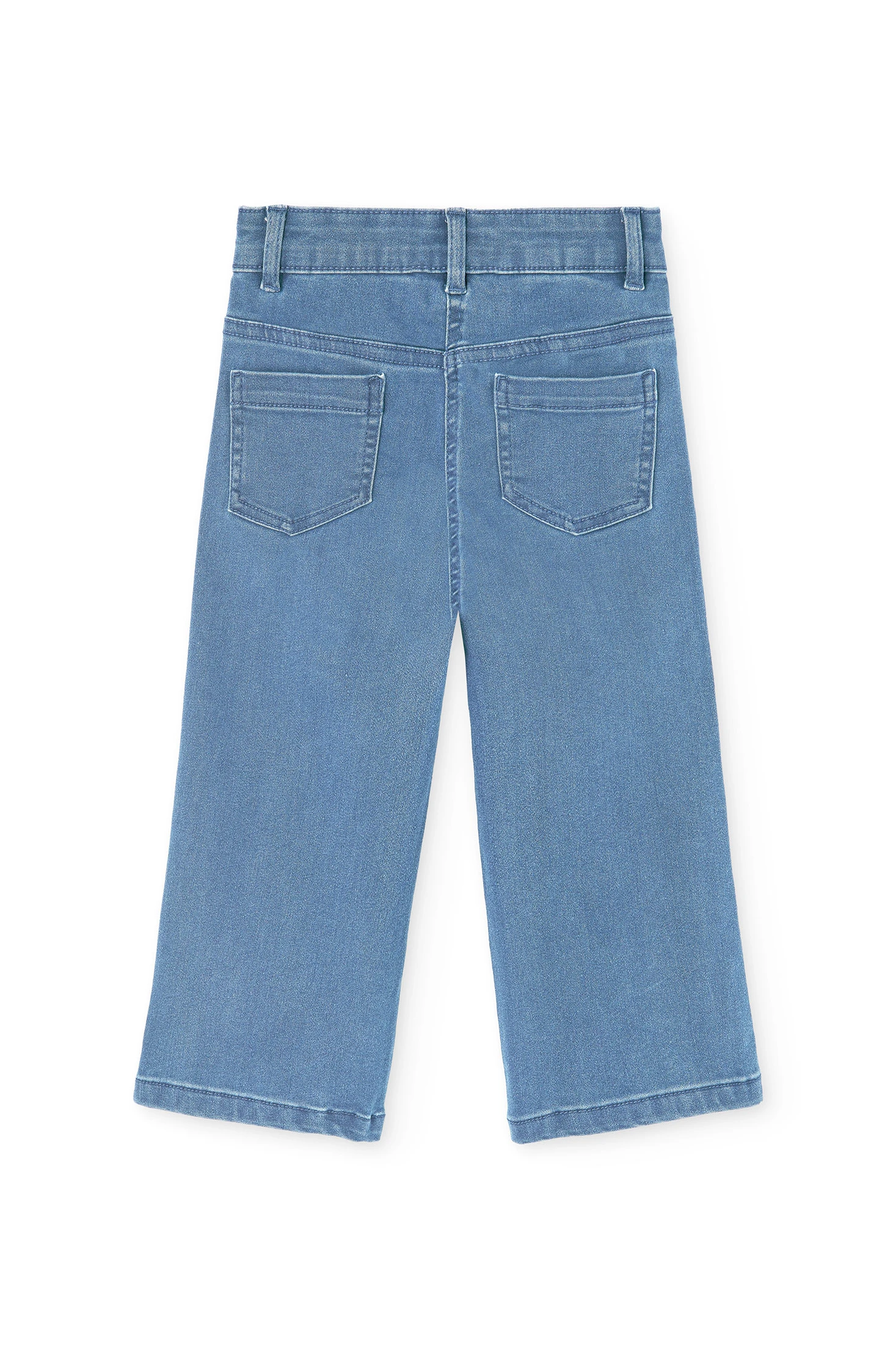Pantalón denim elástico para niña. De color bleach, presenta un diseño liso con acabado vaquero, ideal para un estilo casual y cómodo. Está confeccionado en un tejido denim flexible, con una composición de 80% algodón y 20% poliéster, que aporta confort y un ajuste agradable para el día a día. Una prenda versátil y práctica, perfecta para combinar con diferentes looks infantiles.