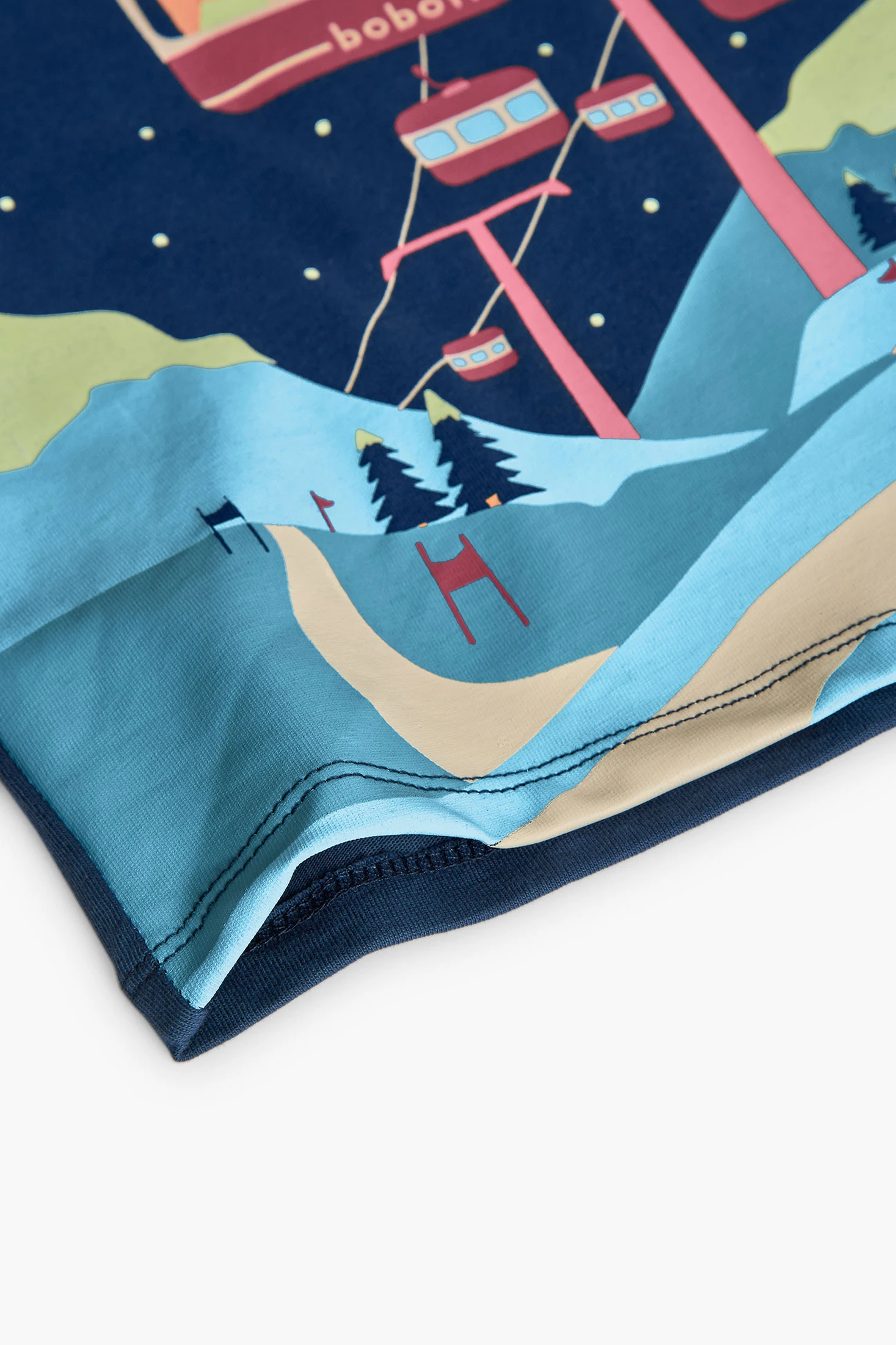 Camiseta de punto azul para niño destaca por su encantador diseño de un teleférico en un paisaje nevado, que añade un toque divertido y moderno al vestuario infantil. Hecha de algodón de punto suave, esta prenda ofrece comodidad y calidez durante el otoño e invierno. Con su cuello redondo y manga larga, es perfecta para combinar con jeans o pantalones casuales. Disponible en tallas desde los 12 meses hasta los 10 años, se adapta al crecimiento de tu pequeño. Ideal para mantener a los niños abrigados en días fríos mientras lucen a la moda.