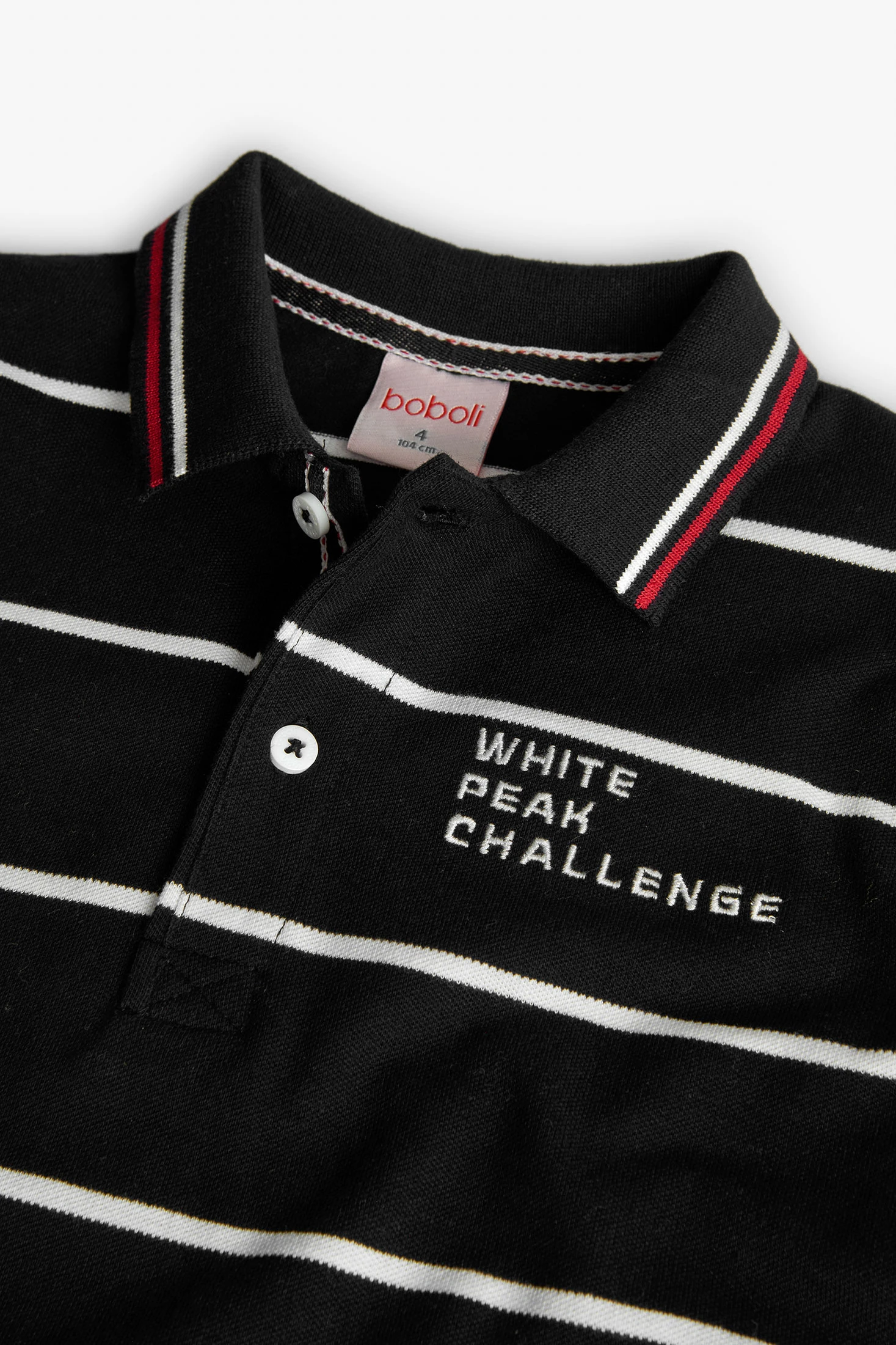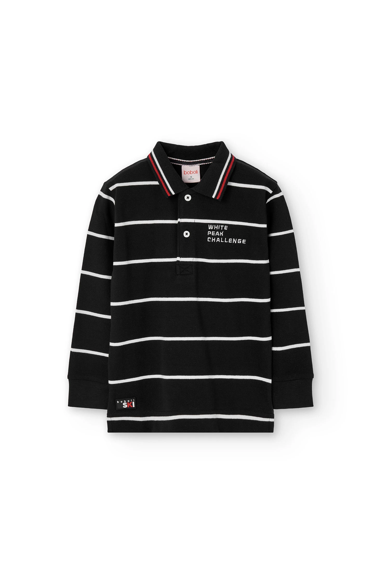 Polo de punto listado en color negro para niño, una prenda versátil y elegante, perfecta para las temporadas de otoño e invierno. Fabricado con un tejido de punto suave y cálido, asegura comodidad durante todo el día. Su tono negro facilita la combinación con diversas prendas, siendo ideal tanto para ocasiones casuales como más formales. Disponible en tallas de 2 a 14 años, este polo es una elección acertada para vestir a tu pequeño con estilo y confort. Combínalo con pantalones de lona o jeans para un look versátil y moderno.