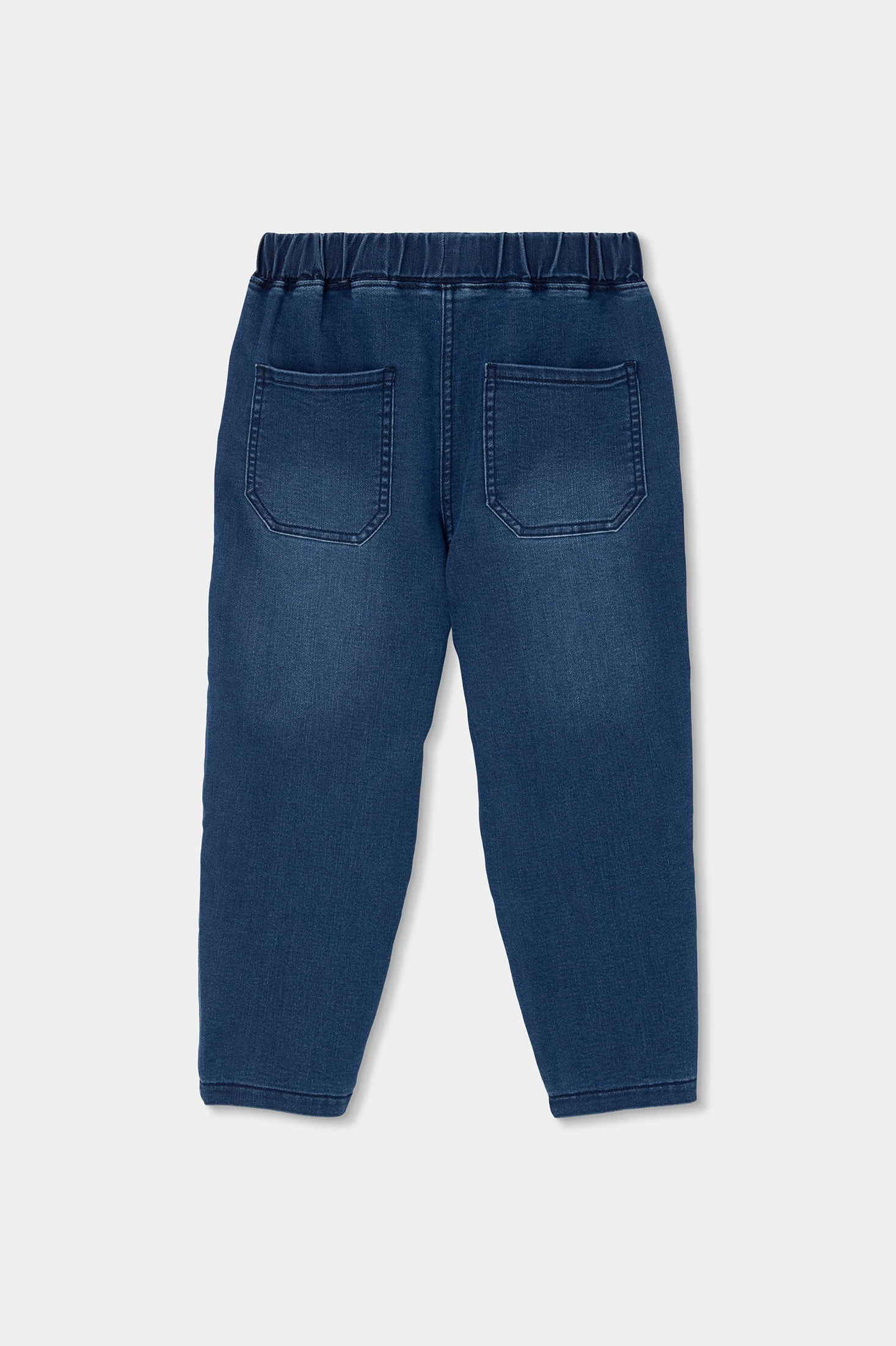 Pantalón denim azul oscuro para niño. Presenta un diseño sencillo con cintura elástica y cordón ajustable, facilitando su ajuste para mayor confort. Perfecto para actividades diarias, combina estilo y funcionalidad. Disponible en tallas desde 12M hasta 10 años, se adapta al crecimiento de tu pequeño. Una opción versátil y moderna, fácilmente combinable para cualquier ocasión.